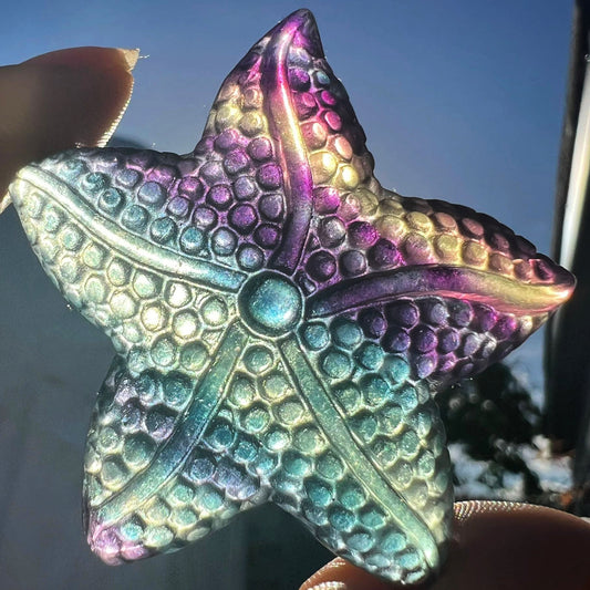 Hand Carved Rainbow Fluorite Starfish