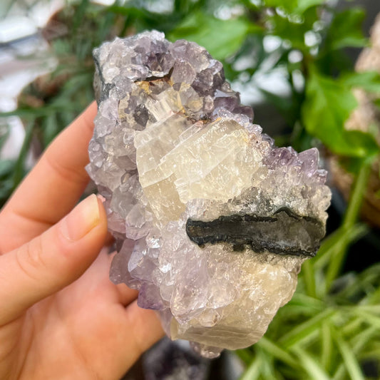 Amethyst Cluster with Large Calcite Matrix 338g