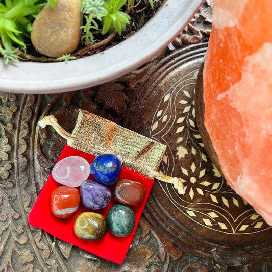 Polished Chakra Stones & Selenite Mandala Wand Set