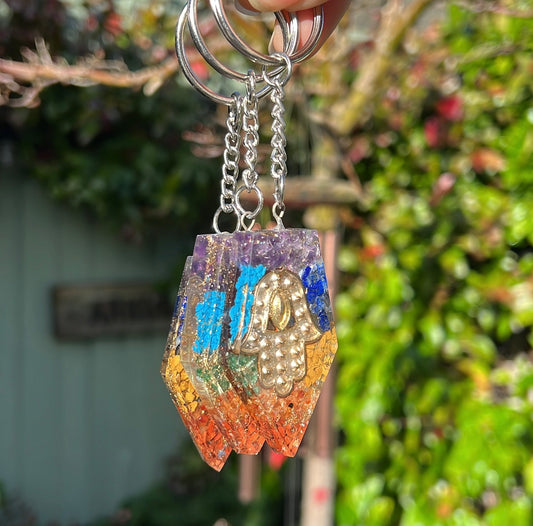Orgonite Power Keyring - Chakra Hamsa Hand