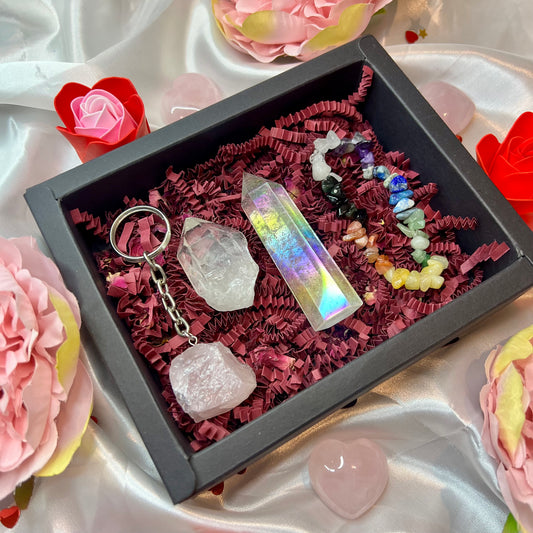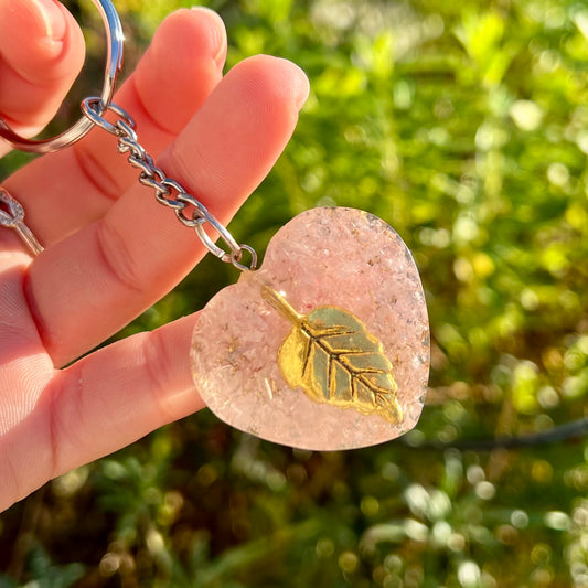 Orgonite Power Keyring - Rose Quartz Heart Golden Leaf