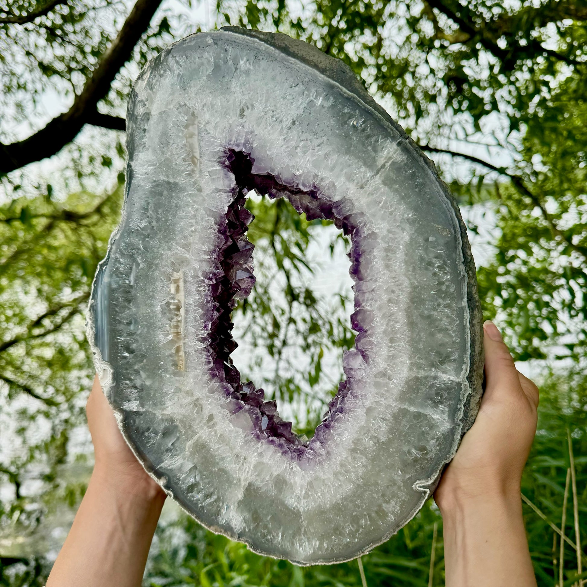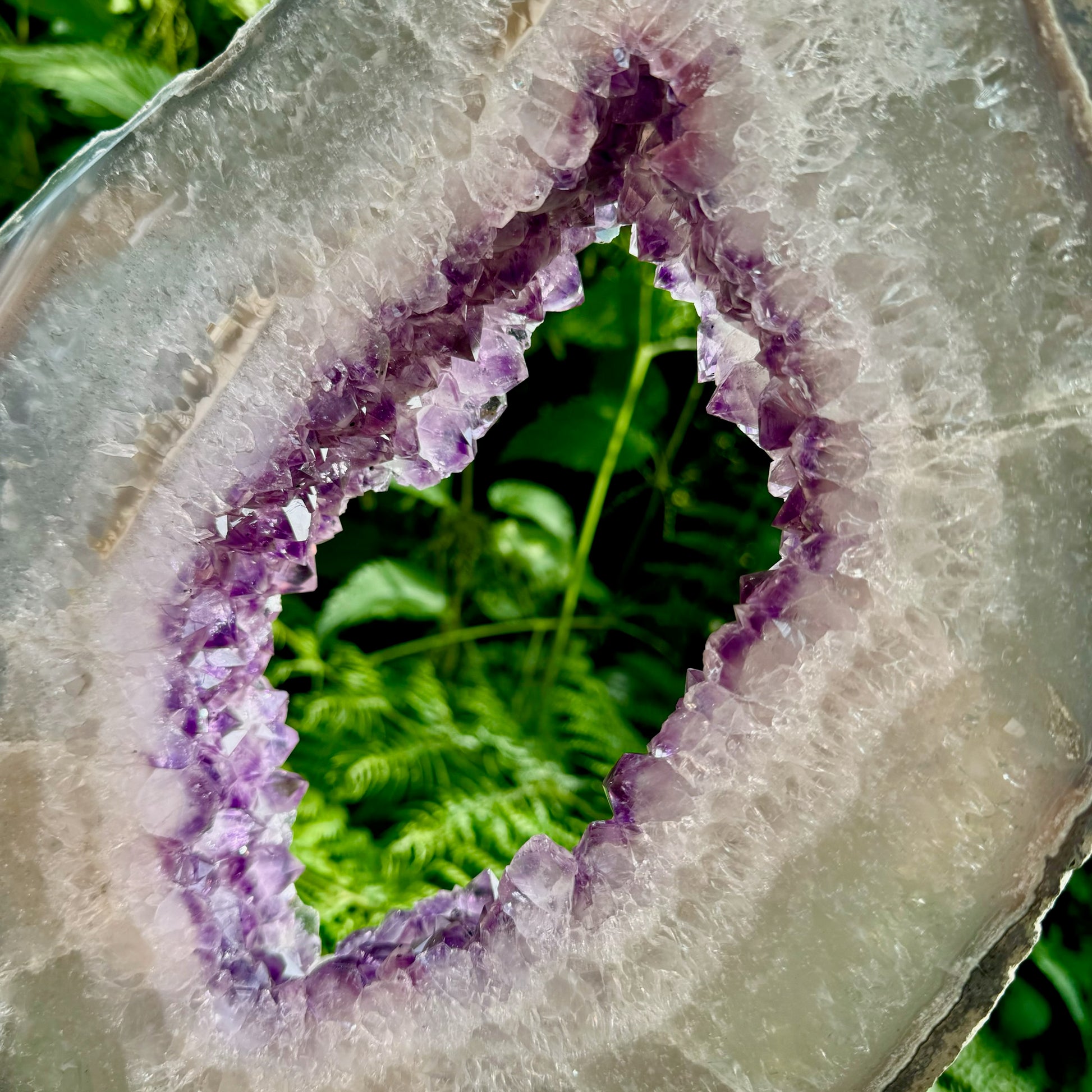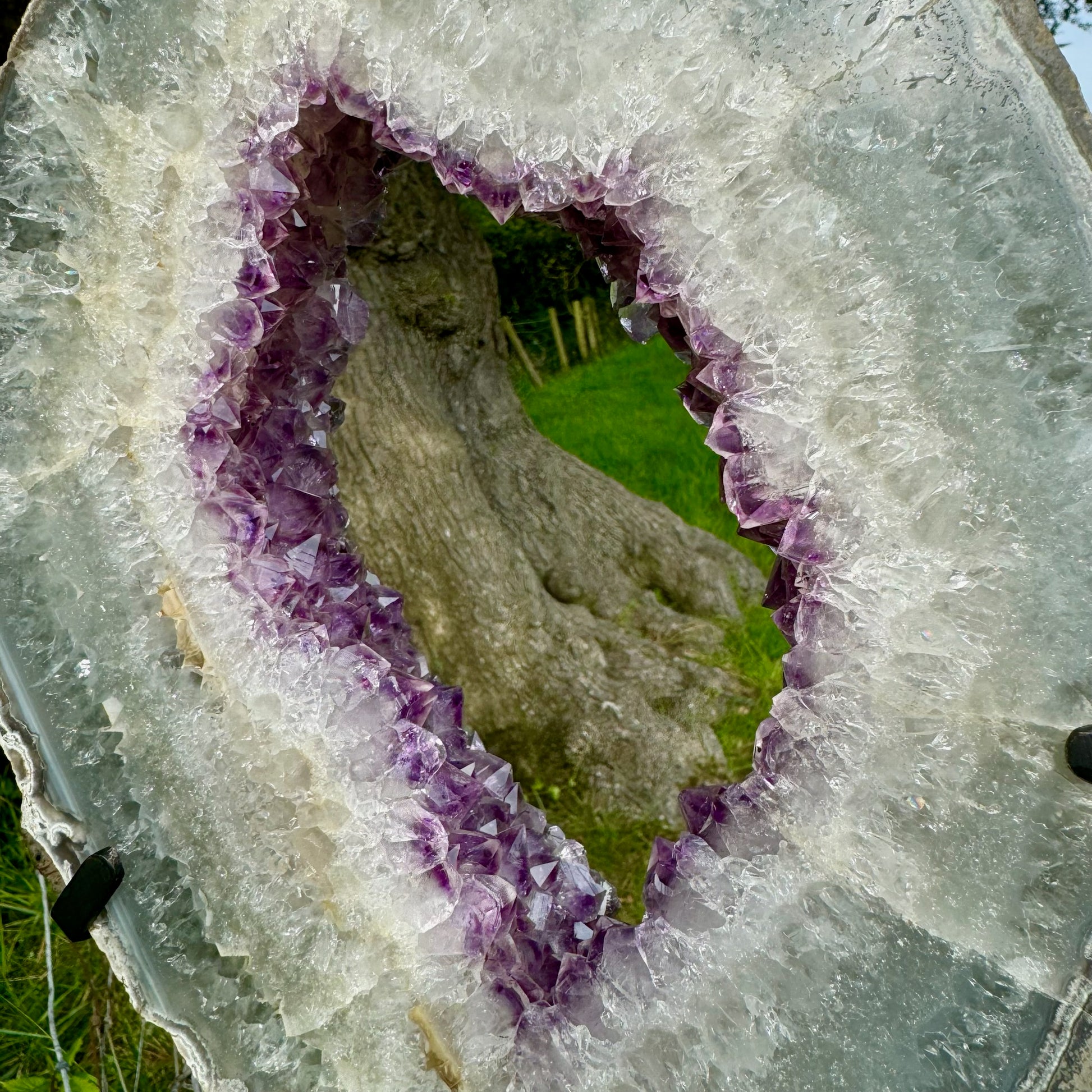 AAA+ Grade Large Polished Amethyst Slice on Steel Stand by Endless Guidance