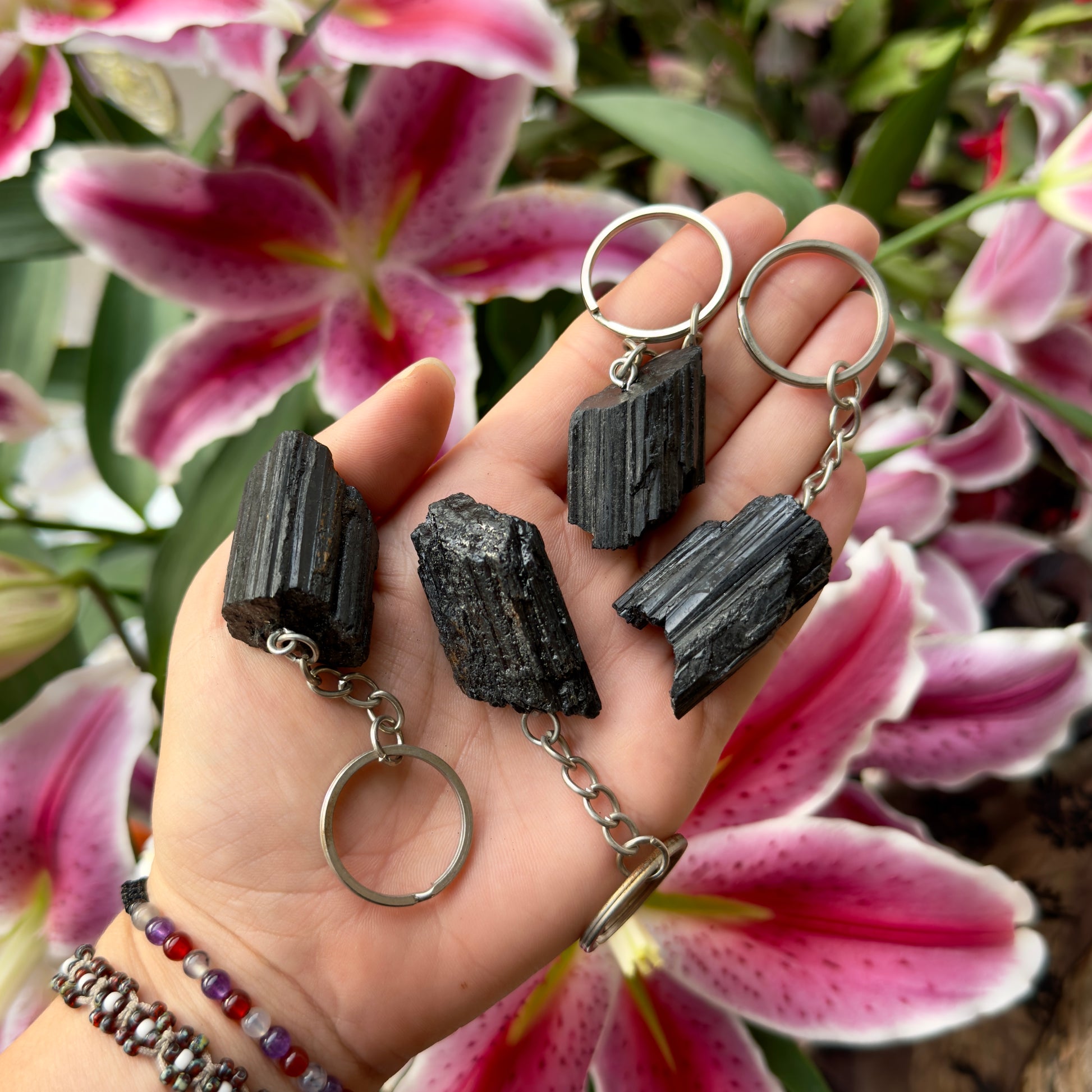 Black tourmaline is treasured by many for its grounding energy and protective qualities. This compact keyring brings that supportive presence wherever you go—whether attached to your keys, bag, or pocket. The natural crystal's deep, lustrous finish makes it both a meaningful spiritual companion and an understated accessory. Perfect for anyone seeking a gentle reminder of their inner strength and resilience throughout the day.