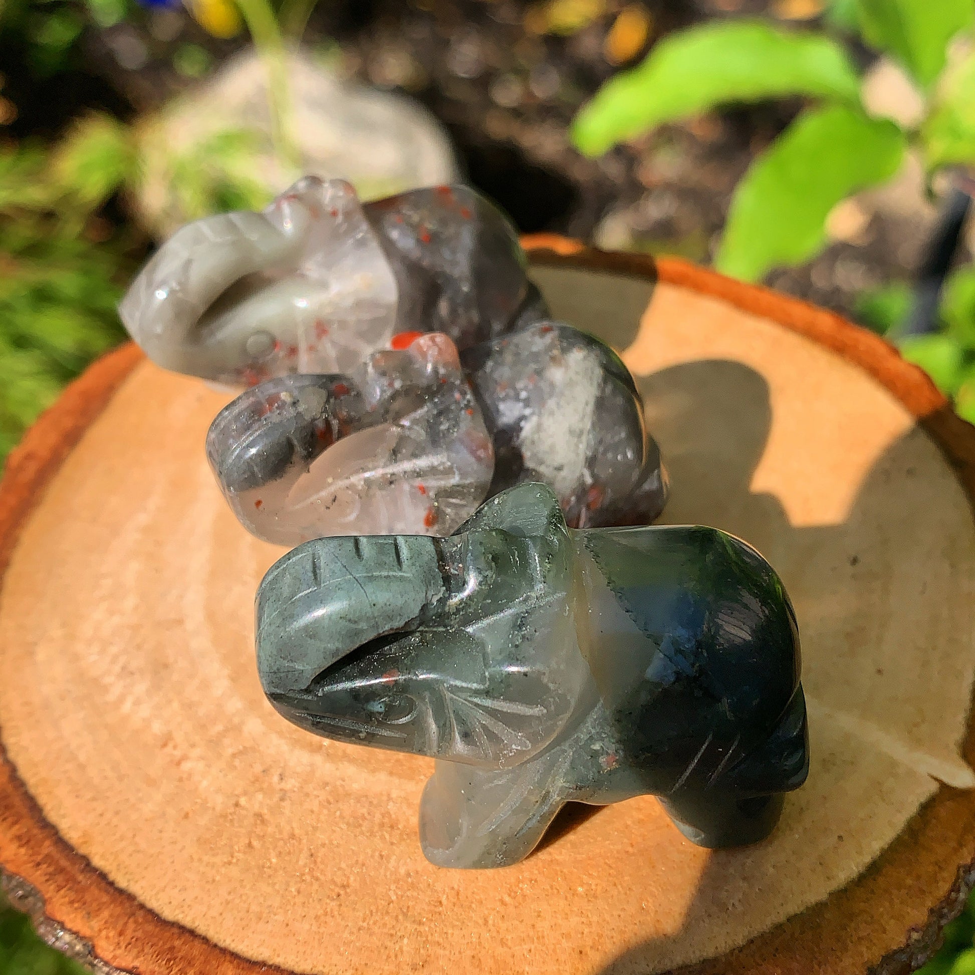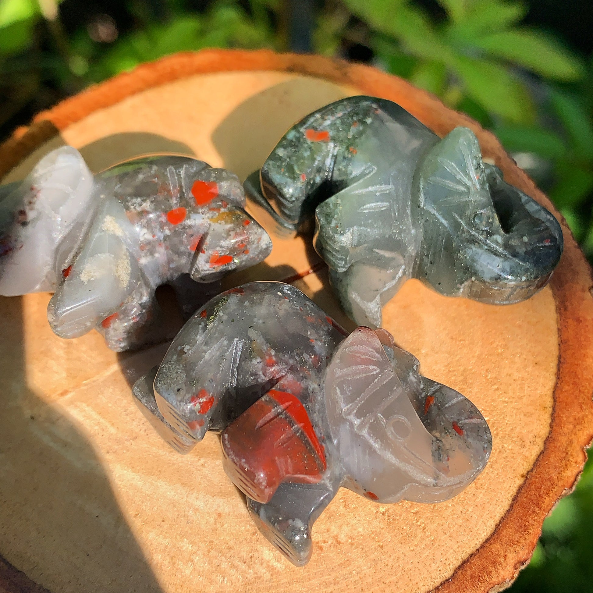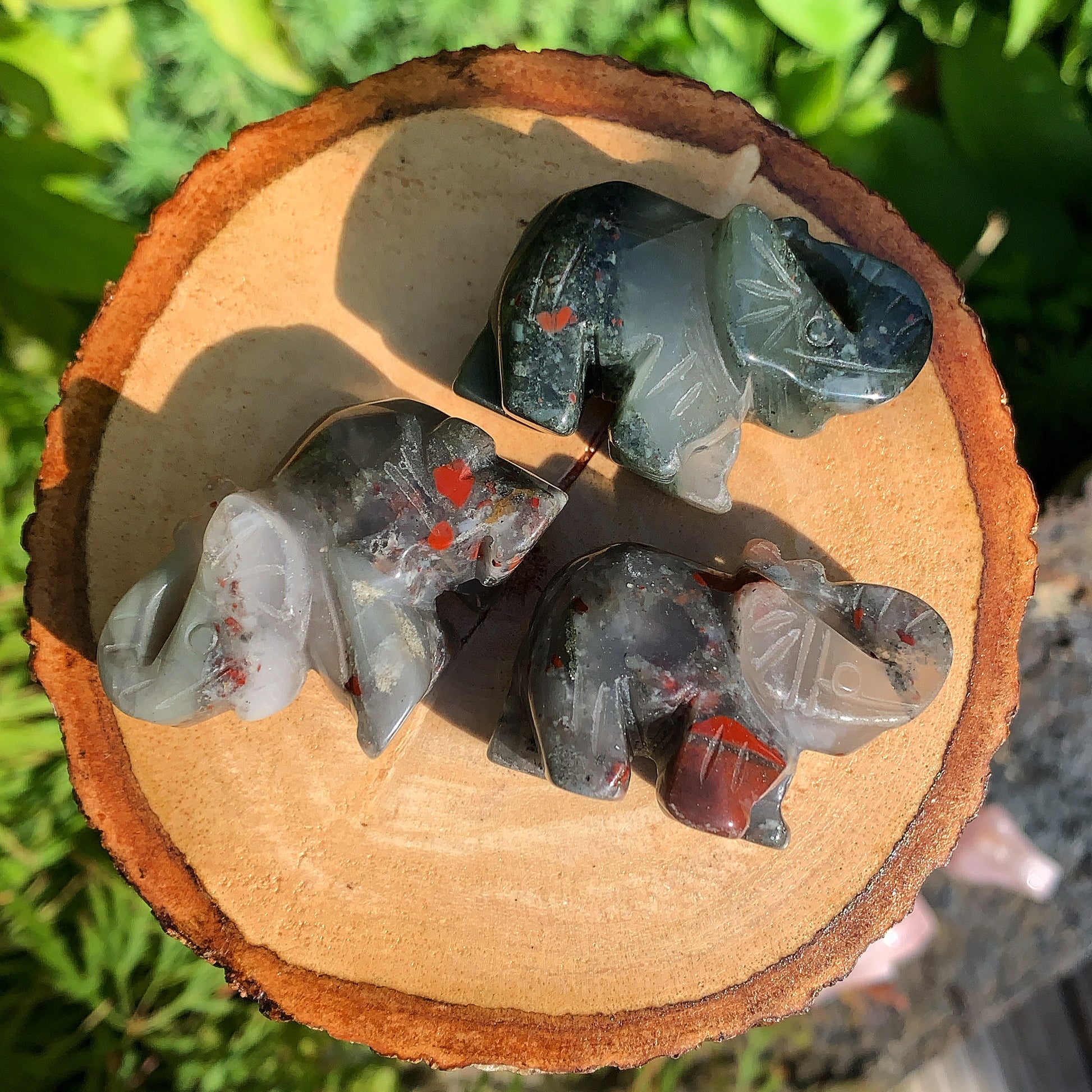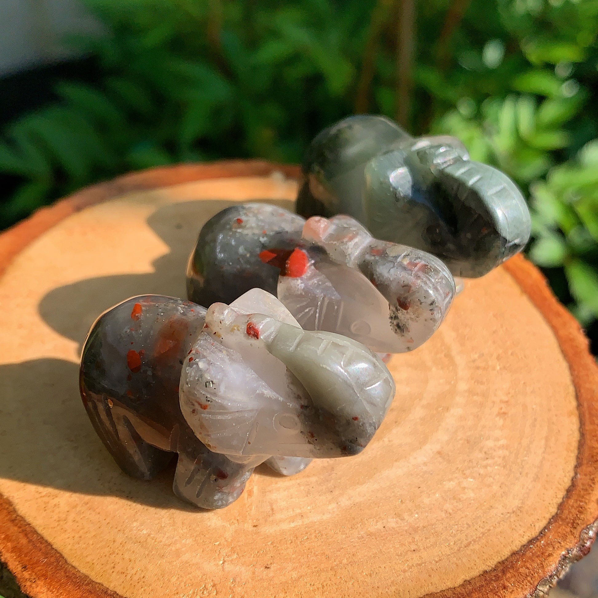 Please note these are 100% Natural Crystals and may differ in size, colour & shape. You will receive one Blood Jasper Elephant.