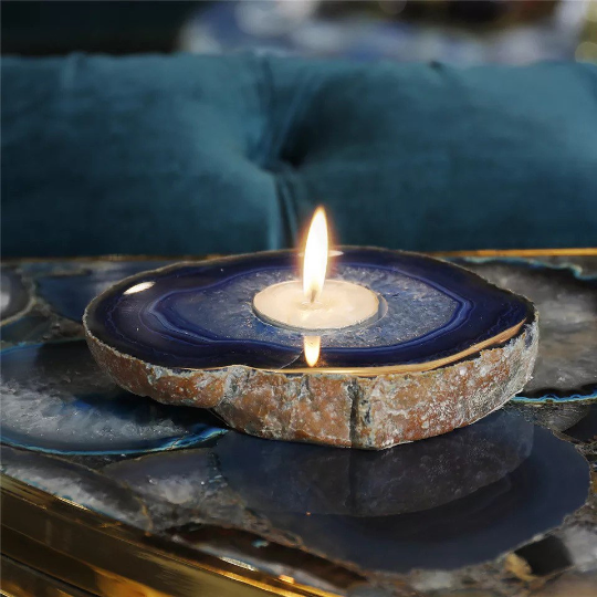 Natural Blue Agate Slice Candle Holder by Endless Guidance