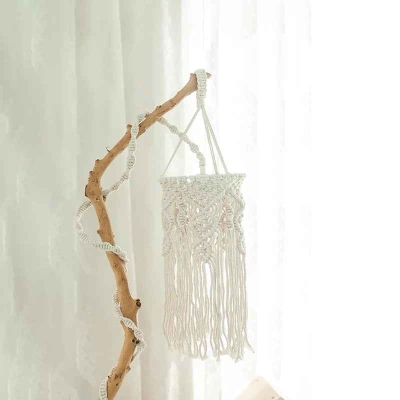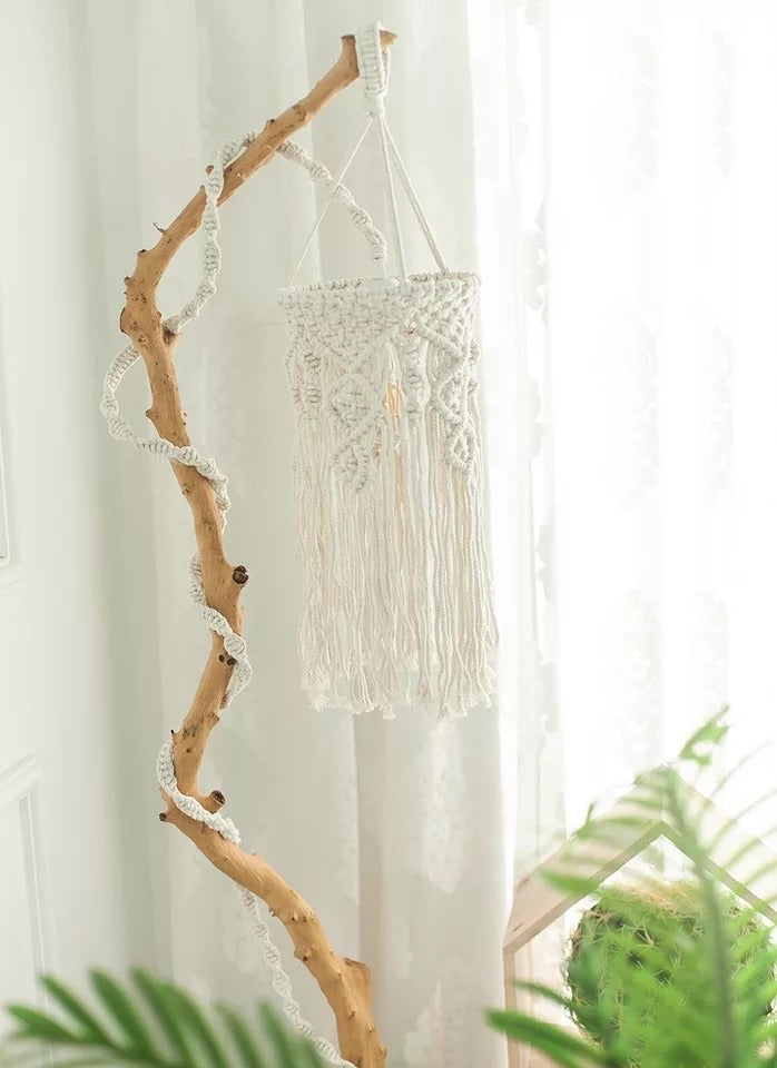 This beautiful woven lace shade is made from natural cotton cord and is handmade. This unique and elegant design will bring a bohemian feel to your room, adding a sense of beauty to your space.