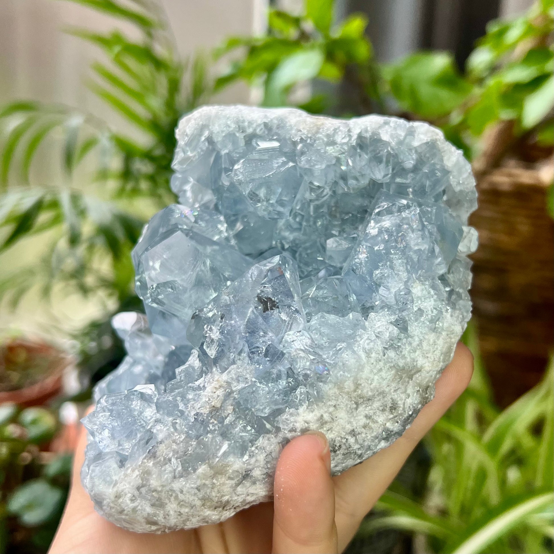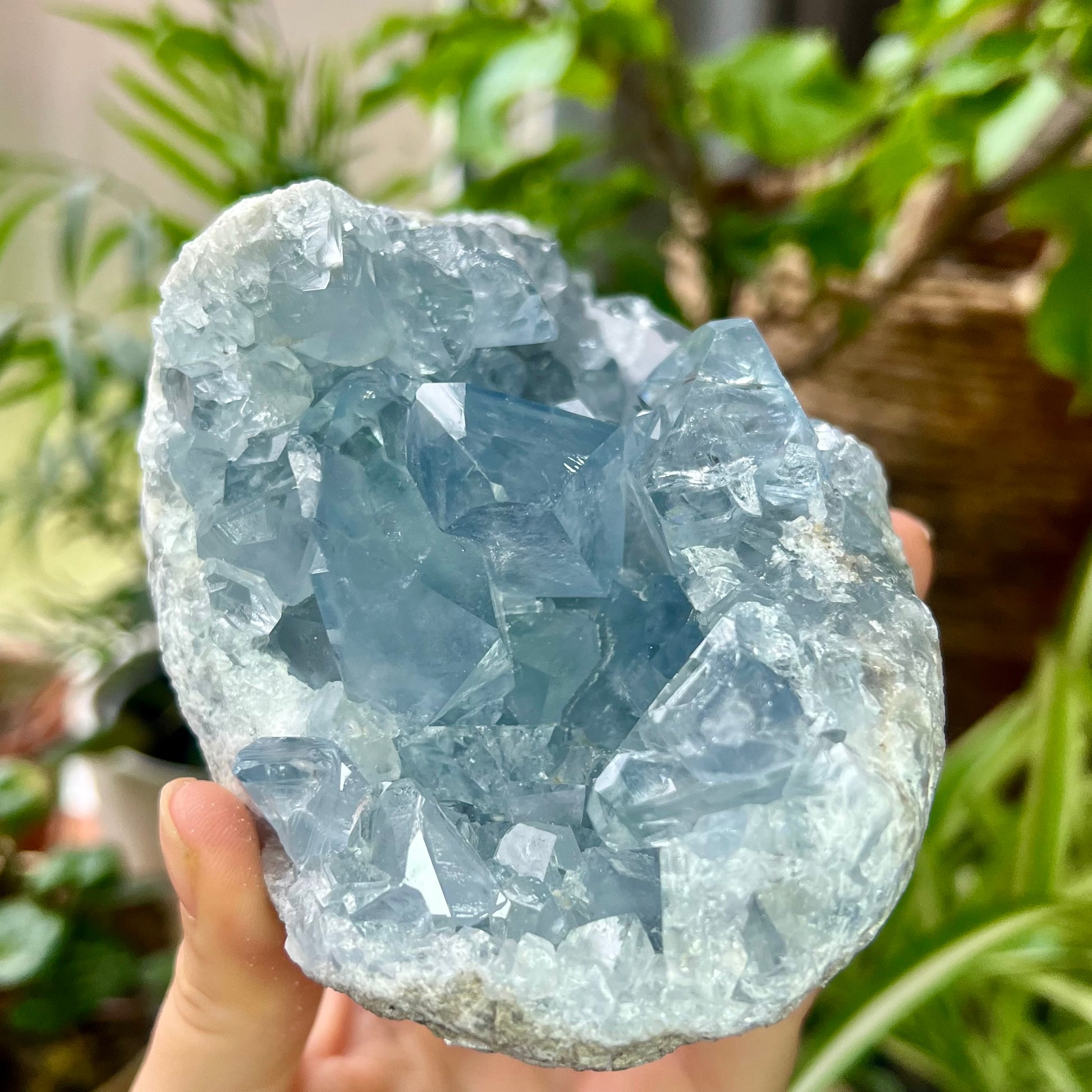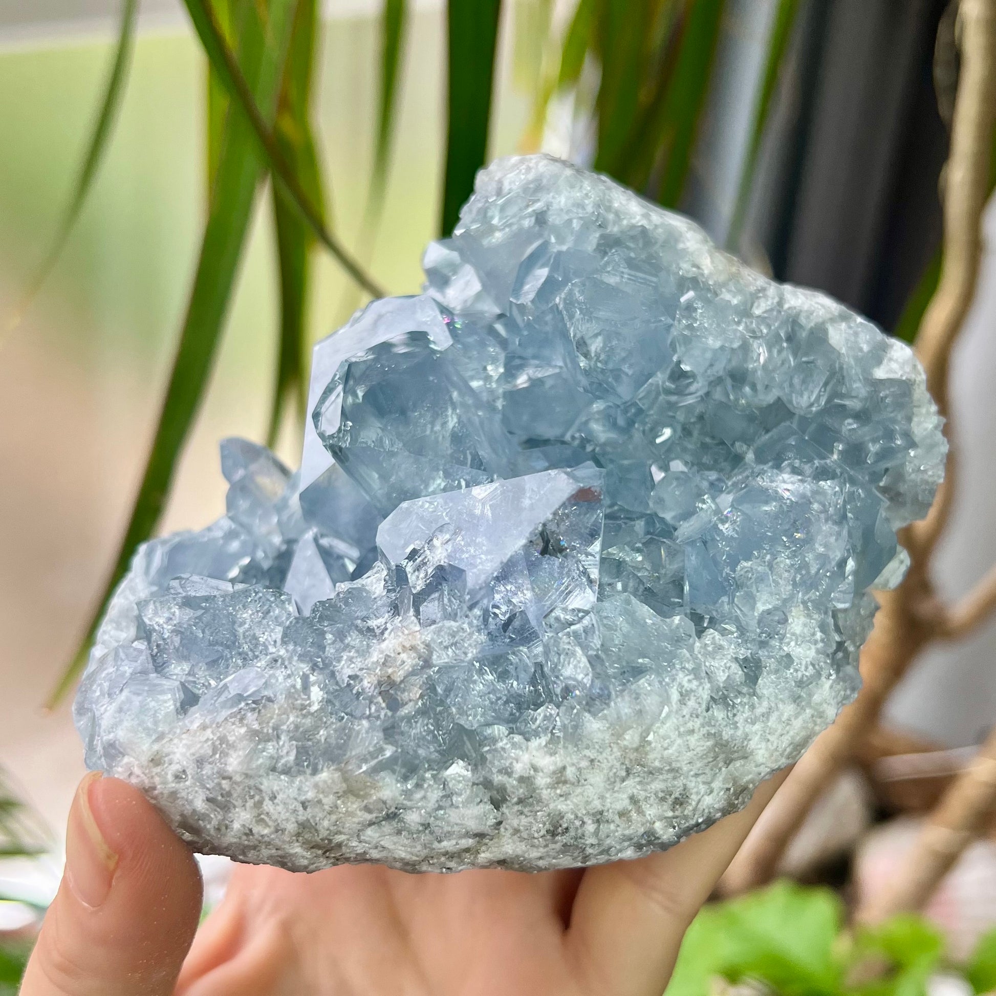 Beautiful premium quality Enchanting Blue Celestite in its outstanding raw form with large multiple Crystal clear sparkling baby blue, light catching shards. A truly High Grade Specimen!