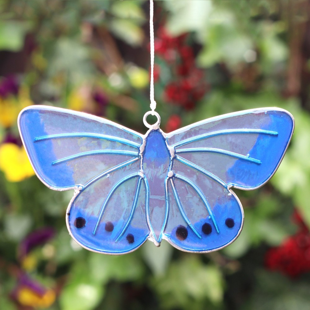 This lovely Chalkhill Blue Butterfly suncatcher provides a delightful way to decorate gardens, windows and conservatories. Hang in a window to reflect the light and bring the sun catcher to life. The suncatcher is made from resin and has a short string and loop for easy and convenient hanging.