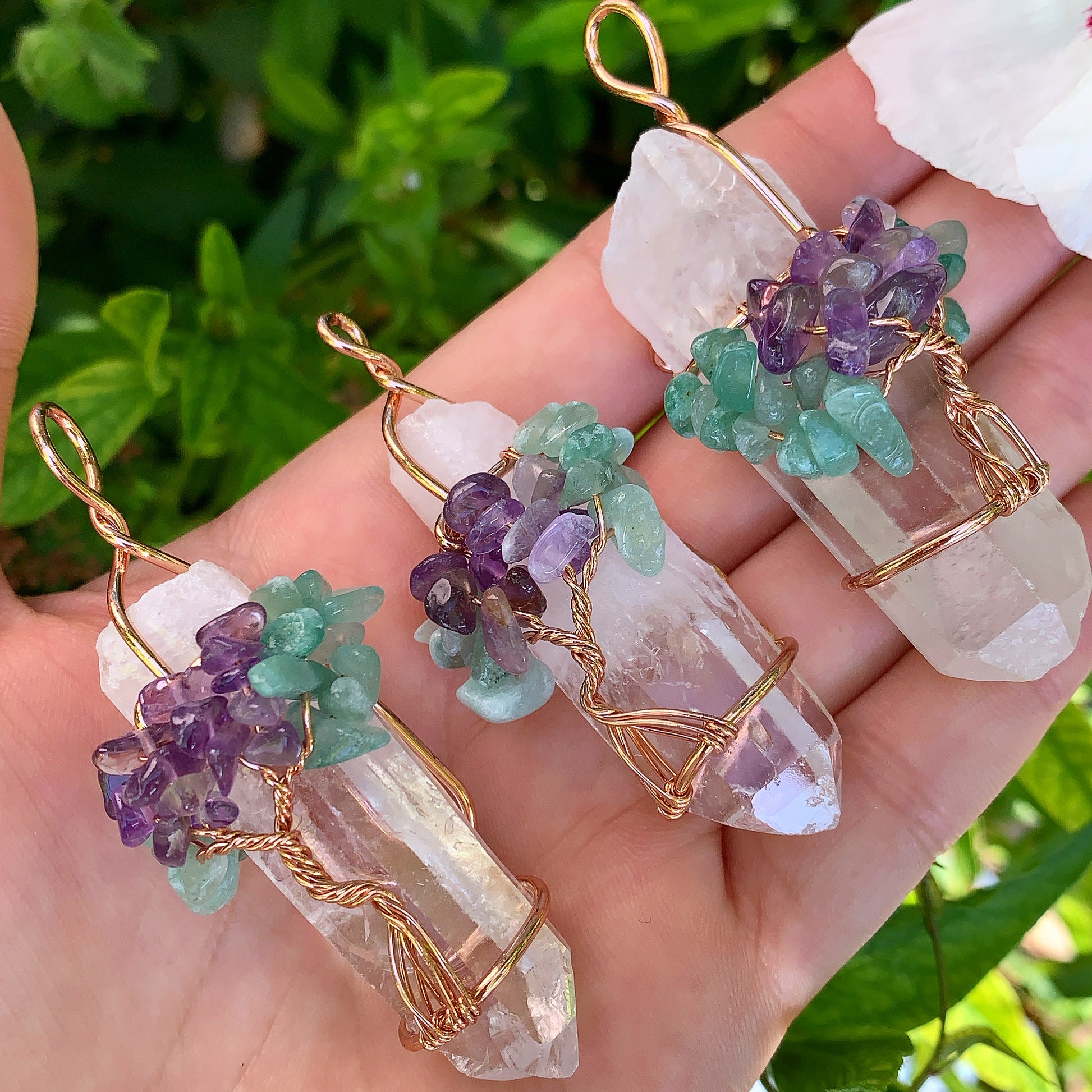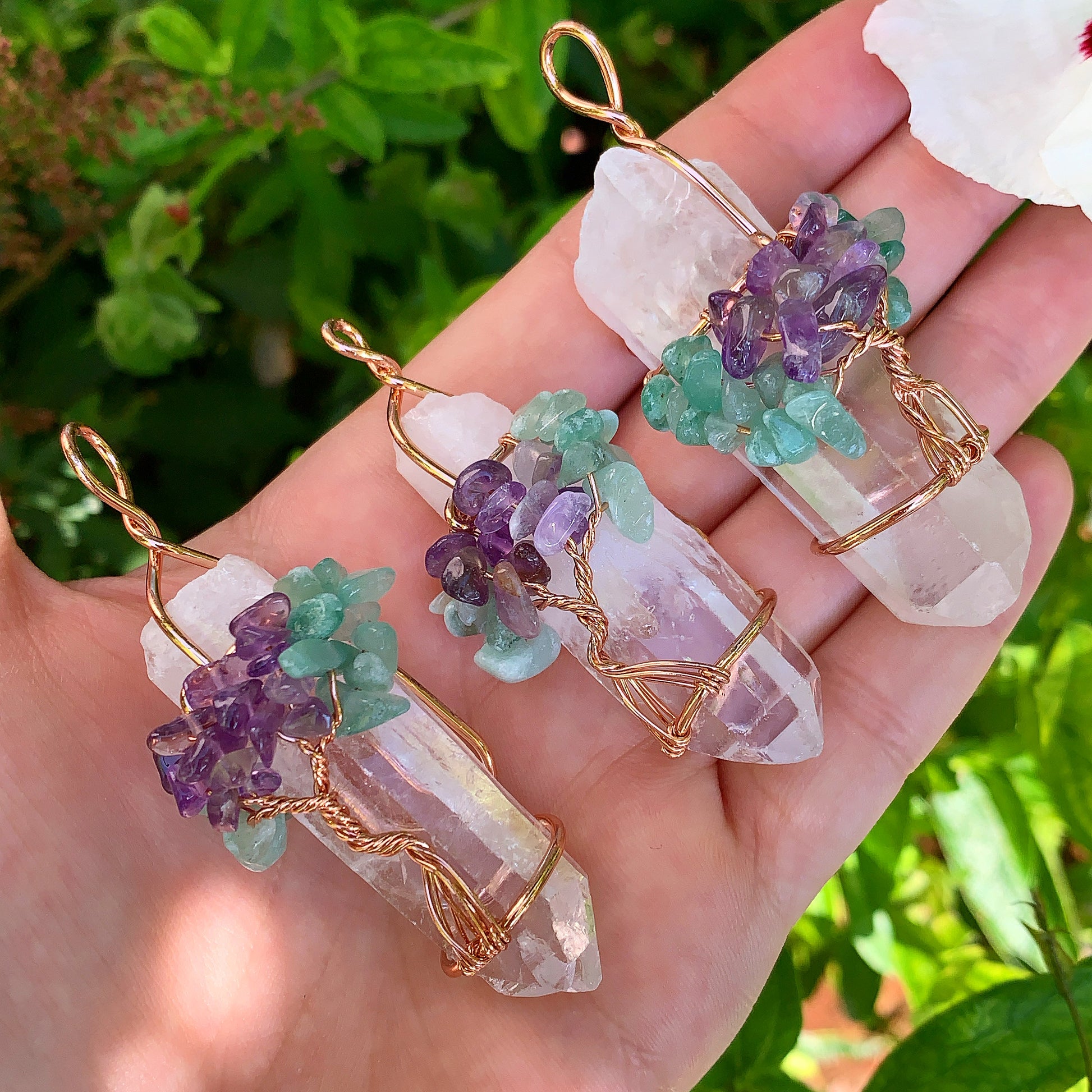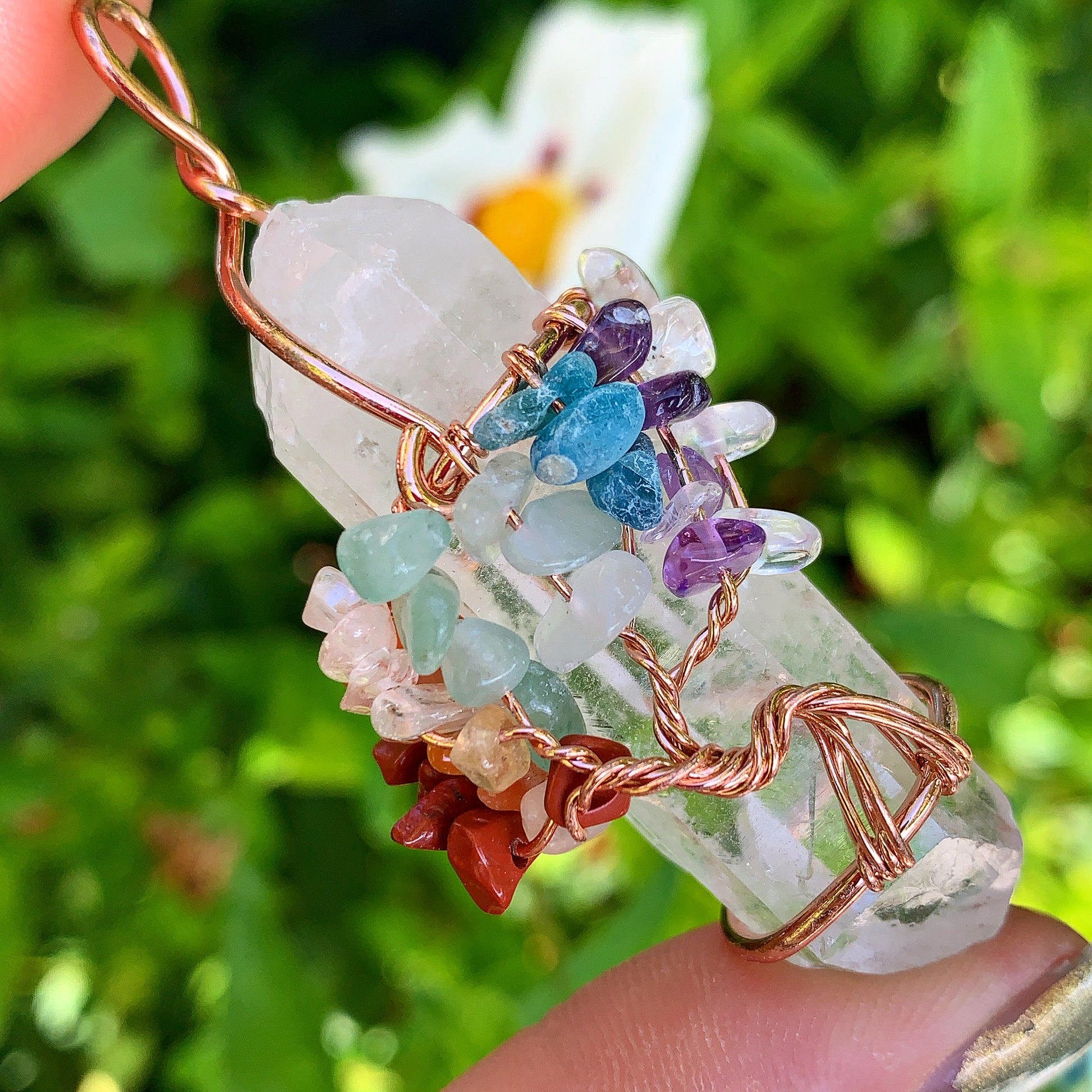 Beautiful, handmade crystal pendant wrapped in wire with the Reiki Chakra Tree of Life. Place this on a necklace so you can wear it throughout the day and benefit from all of its magical healing properties!