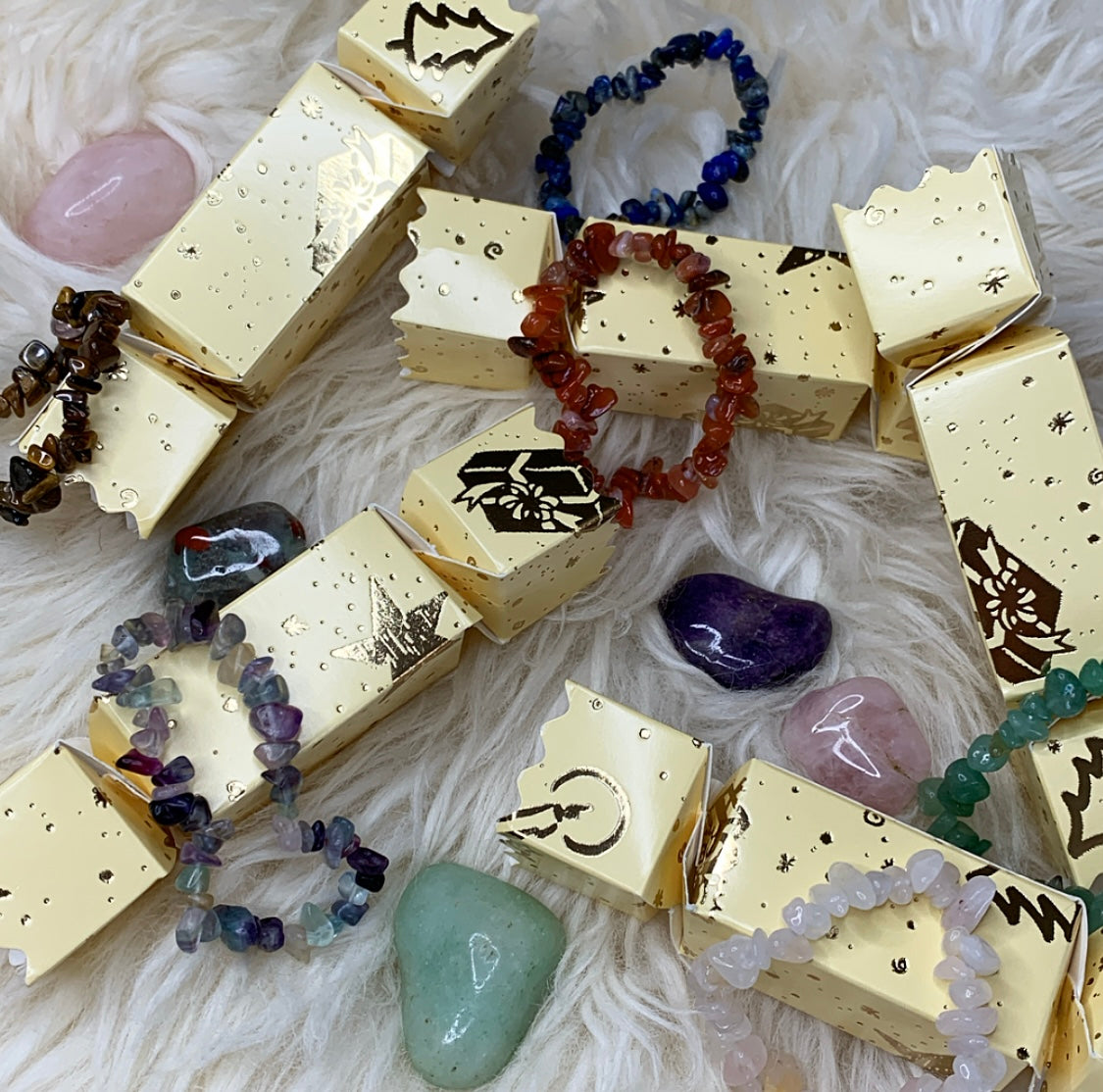 Give the gift of crystal healing with our Natural Crystal Christmas Crackers. Each one is bursting with a beautiful bracelet, raw & polished crystals to add to your collection or to introduce crystals to loved ones at your holiday dinner. The perfect stocking stuffer for beginners and collectors alike.