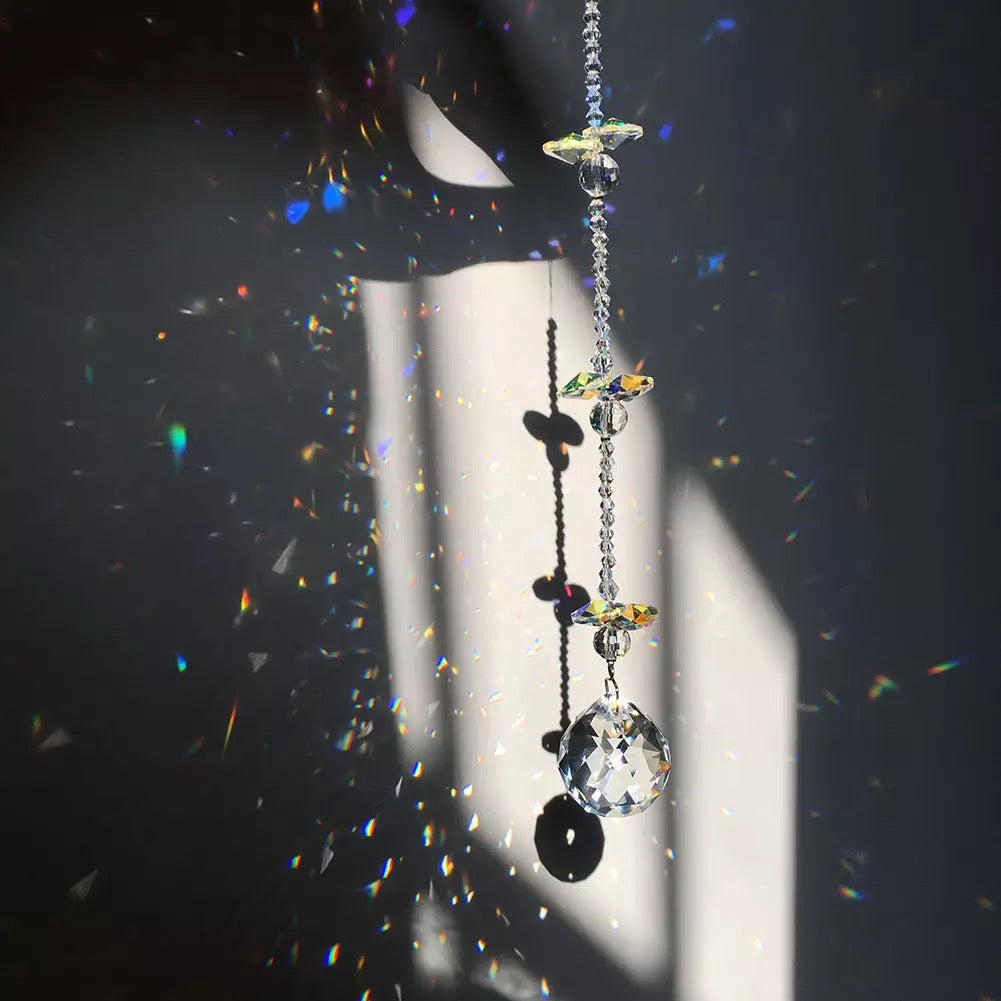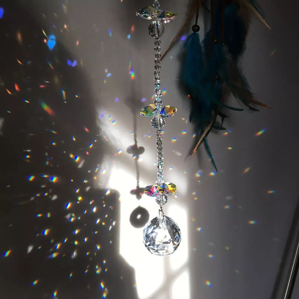 Pretty Handmade three layered Crystal Suncatcher, hang it up in front of your window to create beautiful rainbow energy rays into your home. Lovely gift idea for a friend or family member to brighten up any room! Our rainbow prism crystals are made of Top Quality K9 Crystal Glass, not acrylic.