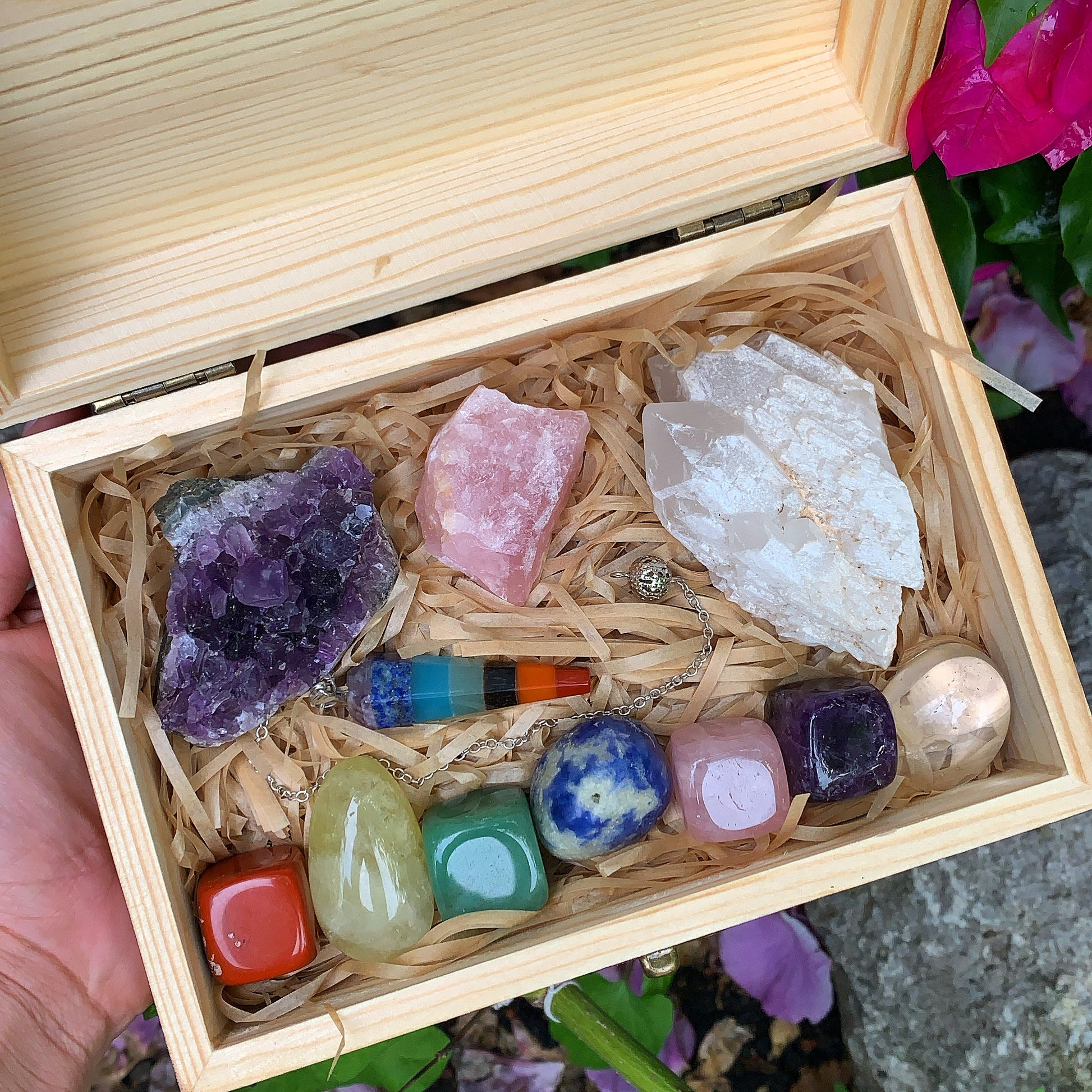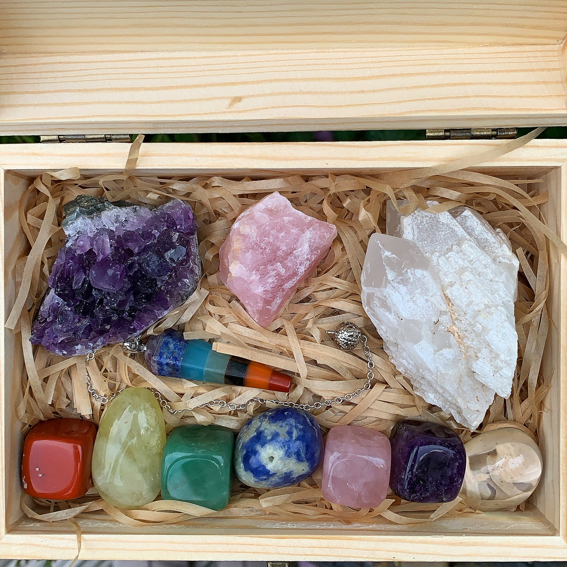 A special gift for others or for yourself. Unwind with crystals and their divine energies from this box. Cleanse your mind and body for a clearer vision. Eliminate negativity with this perfect self-care package each crystal has their own unique healing properties!