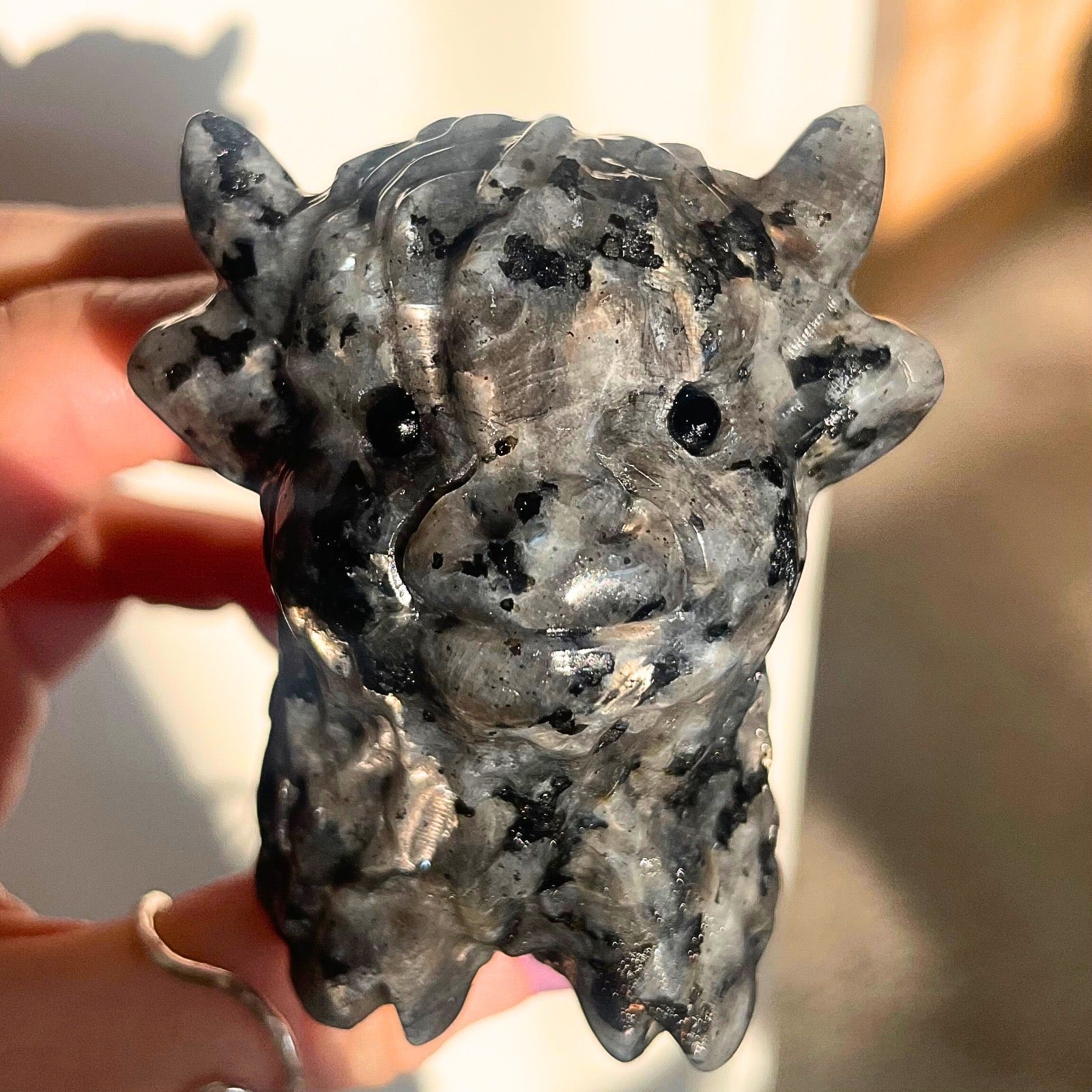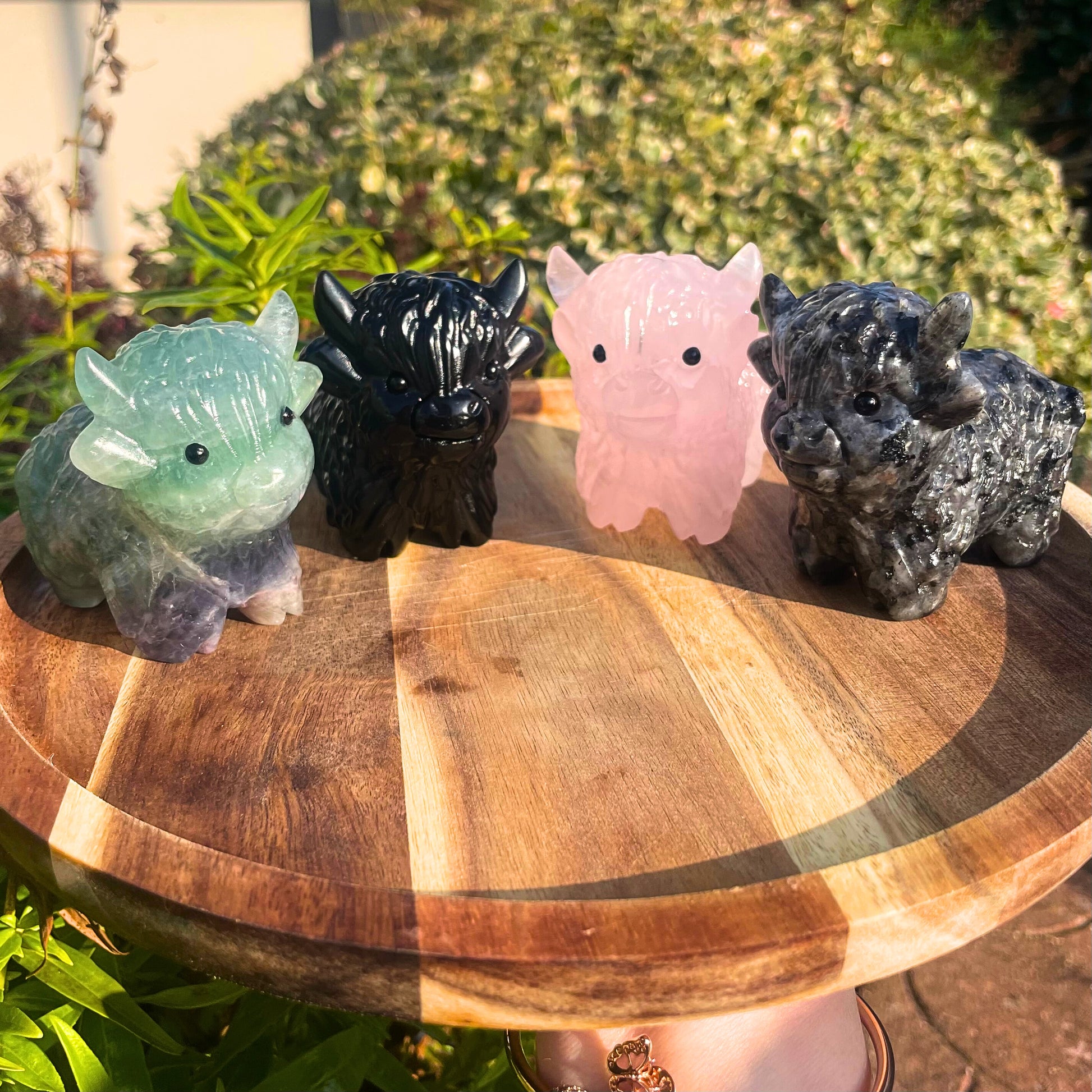 Our adorable highland crystal hand carved cows are the perfect addition to anyone's crystal collection. 100% natural crystals, hand carved into the most precious shape. They sit perfectly on all four legs, perfect for a desk crystal to keep you company at all times.