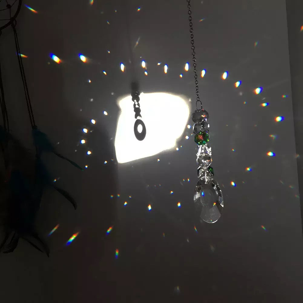 Pretty Handmade Infinity Crystal Suncatcher, hang it up in front of your window to create beautiful rainbow energy rays into your home. Lovely gift idea for a friend or family member to brighten up any room! Our rainbow prism crystals are made of Top Quality K9 Crystal Glass, not acrylic.