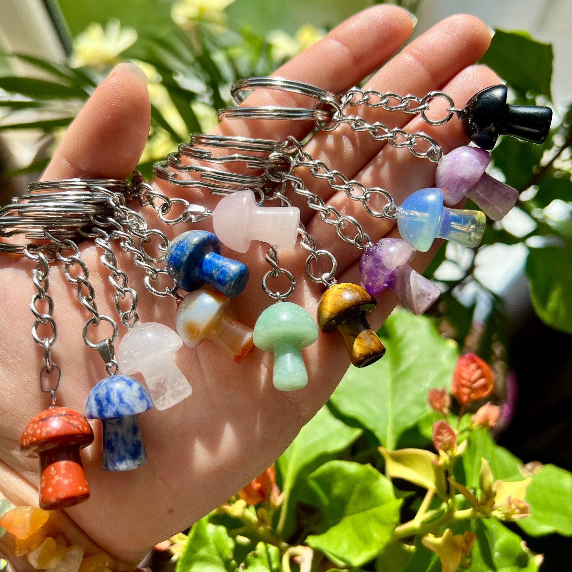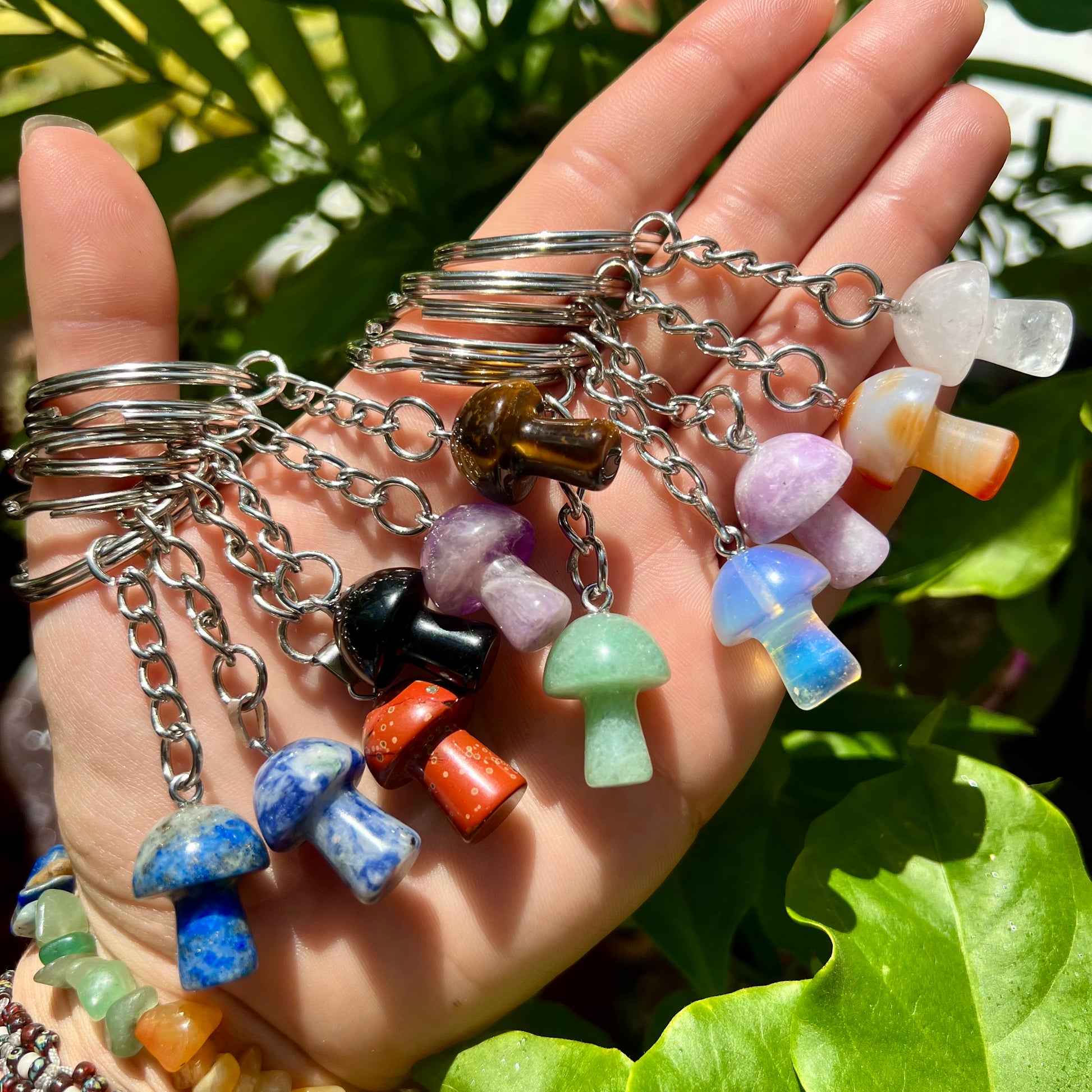 Carry a touch of sparkle with you wherever you go with these adorable Crystal Mushroom Keyrings. Attach them to your keys, bag, or backpack and benefit from the natural properties of crystals. Choose your favourite crystal type today!