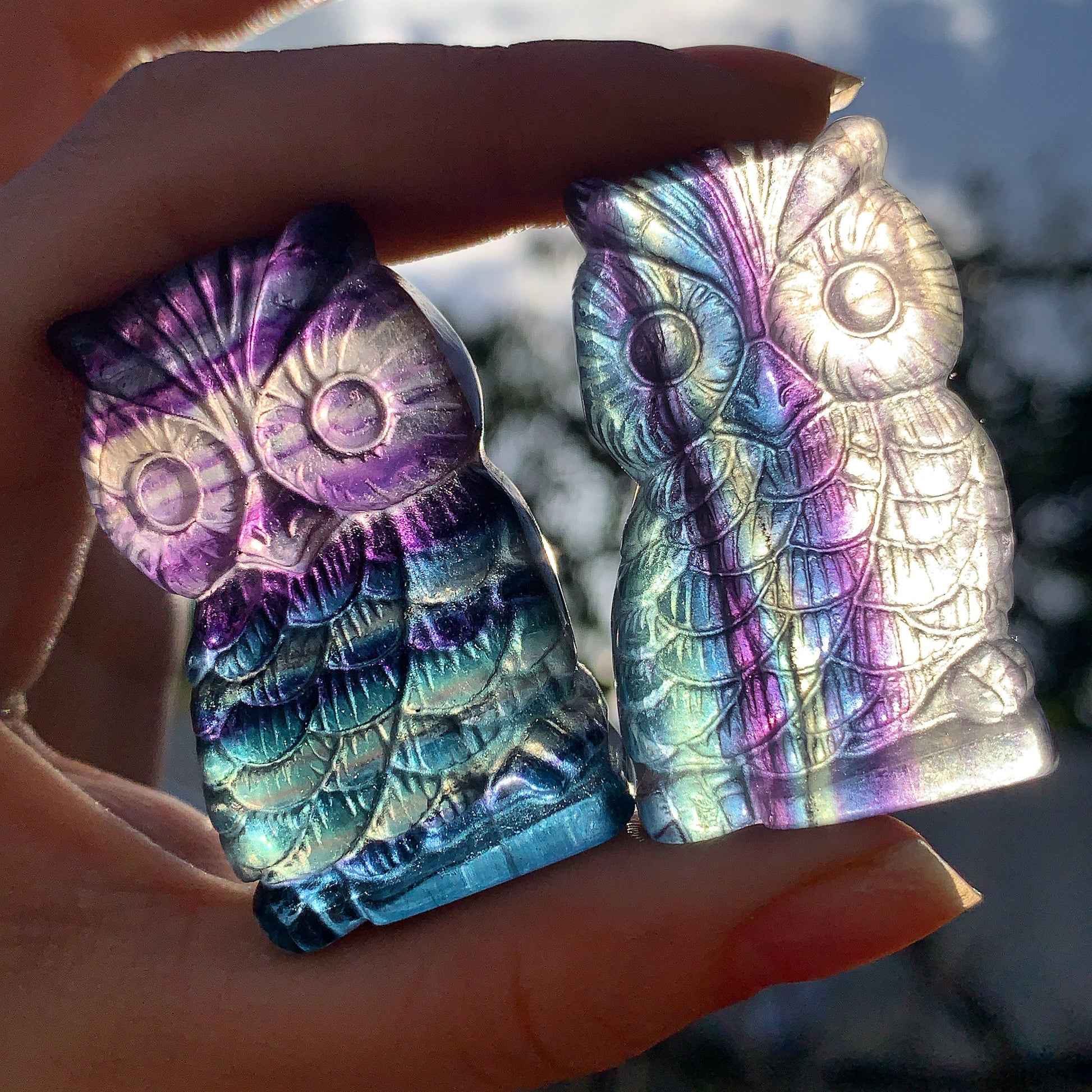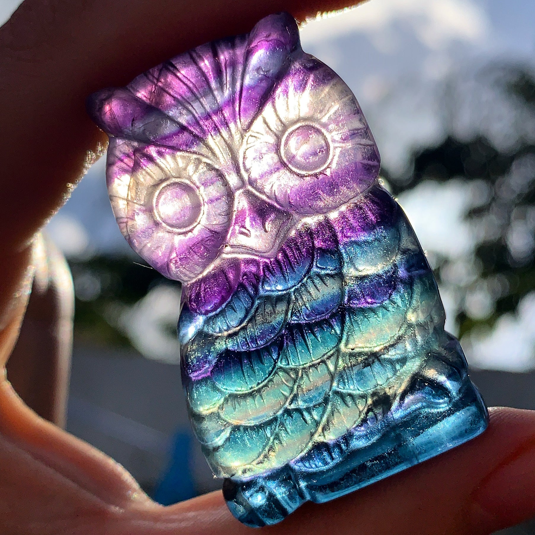 Hand Carved Rainbow Fluorite Owl by Endless Guidance