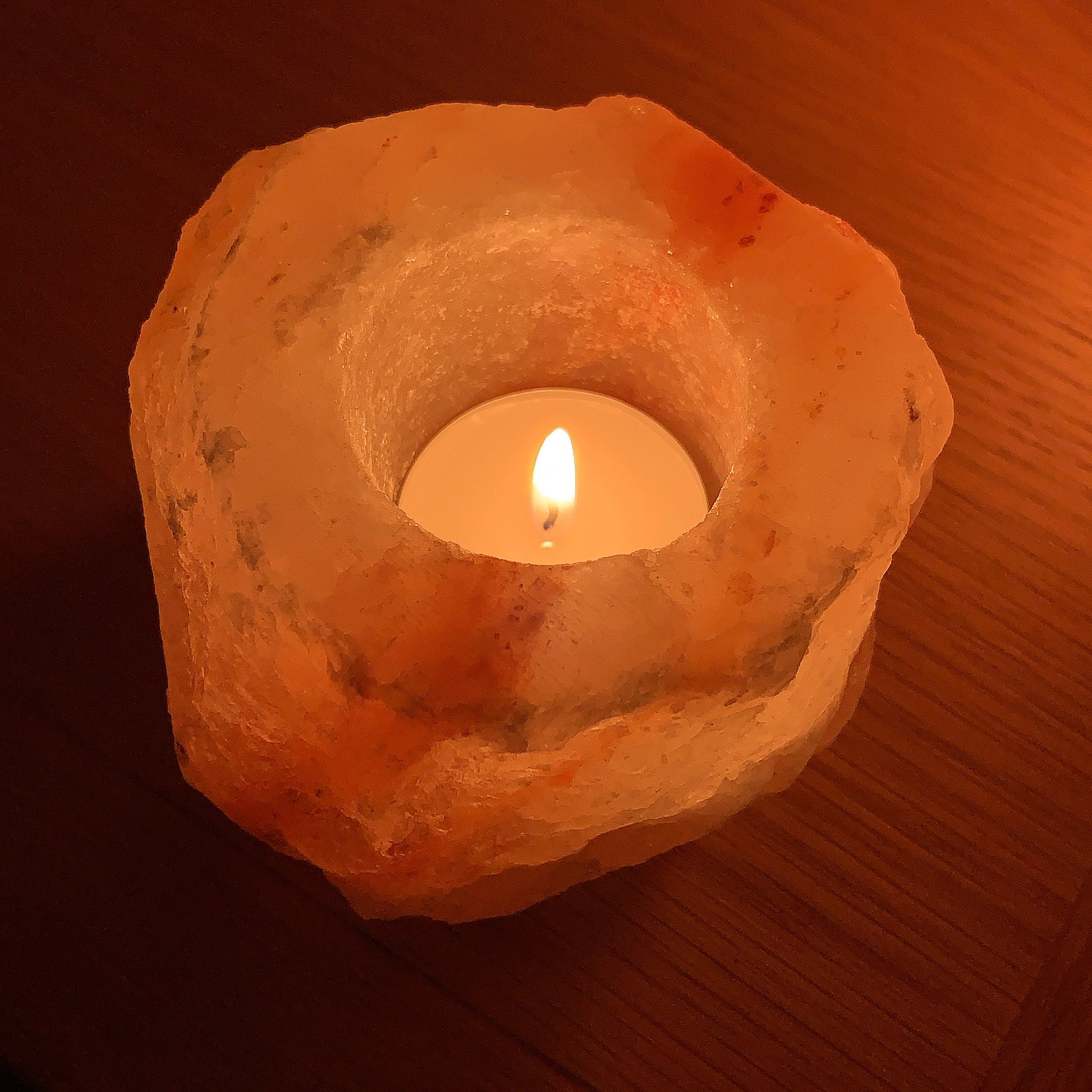 100% natural Himalayan Salt tealight holder. Holds a single tealight in the centre. Himalayan Salt, well known for its therapeutic and stress relieving properties. Use your candle holder to purify the air. Himalayan salt lamps add a beautiful warm glow to any environment and emit a stream of negative ions which can purify the air against allergens and pollutants.