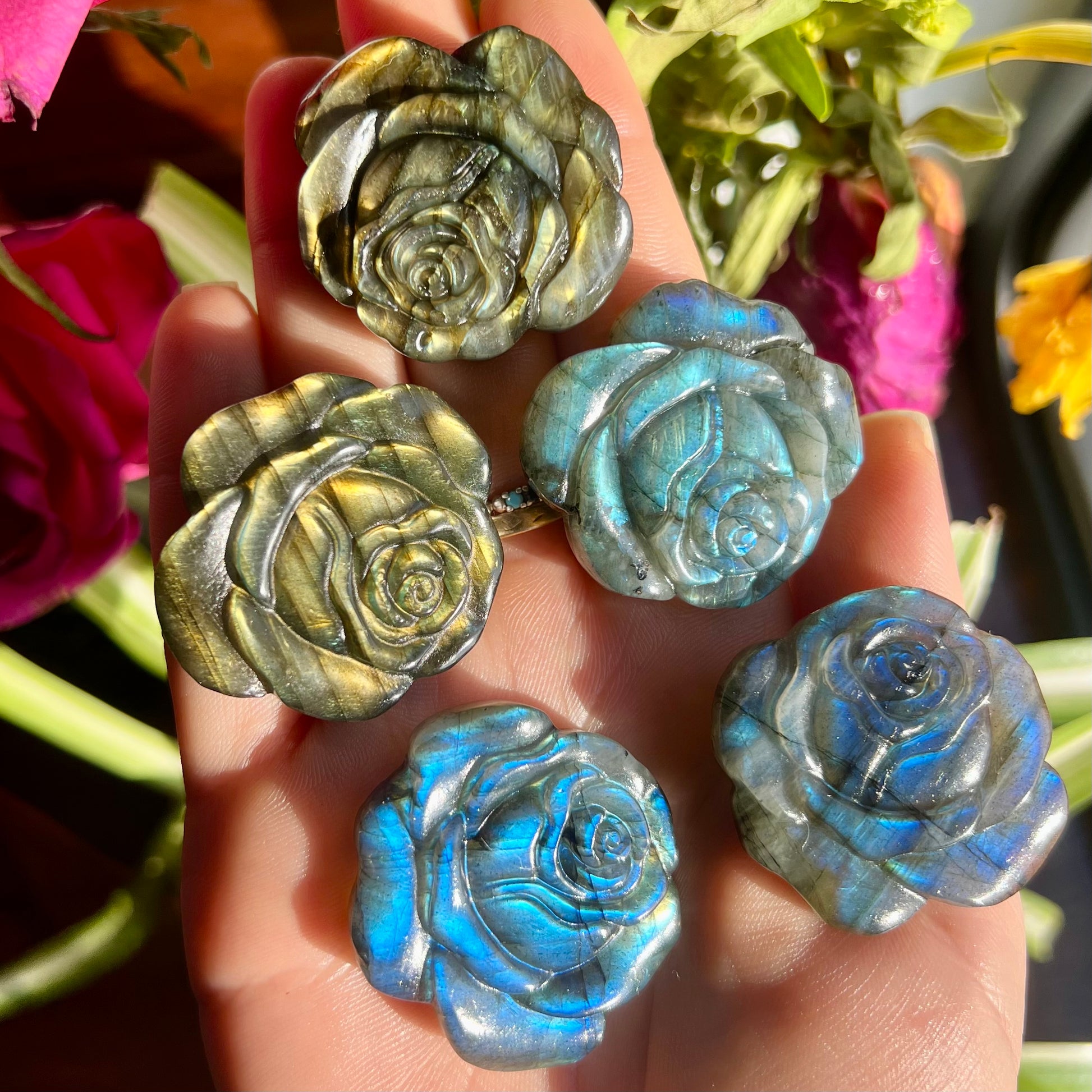 Labradorite Crystal Rose Carvings by Endless Guidance