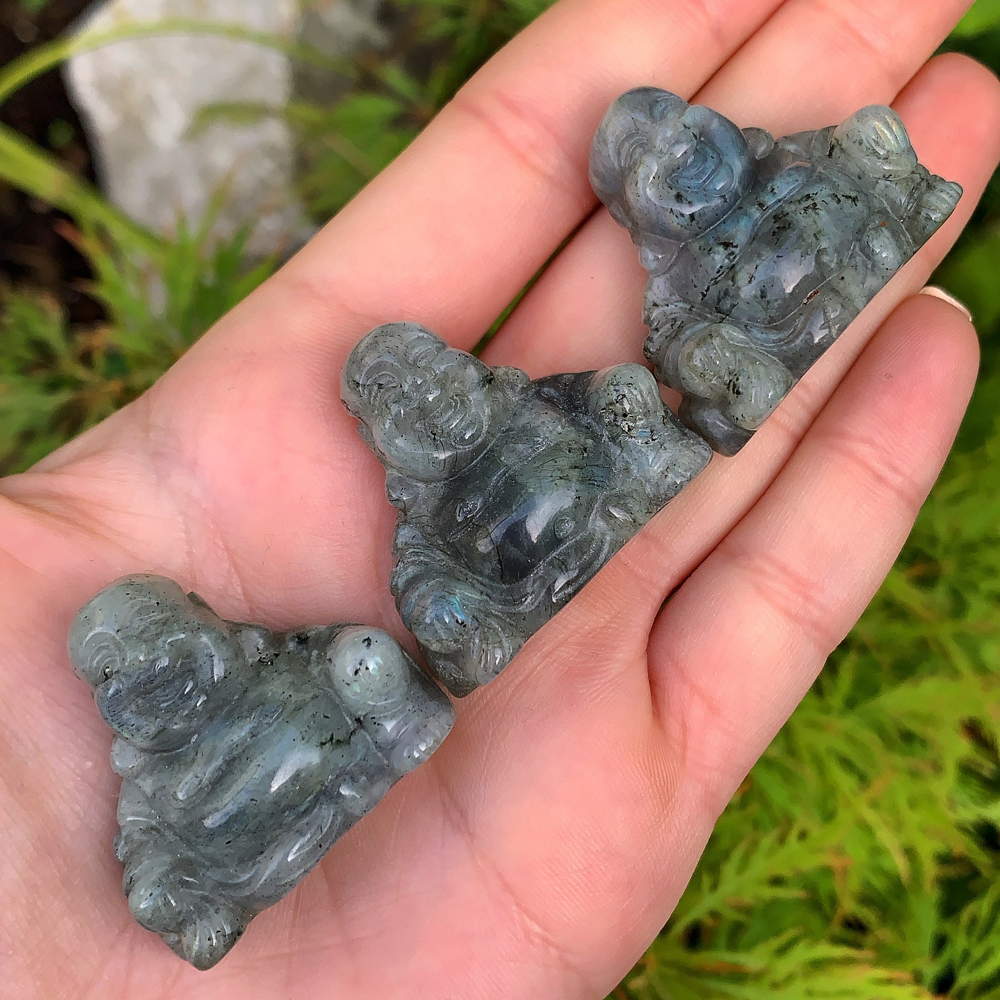 Please note these are 100% Natural Crystals and may differ in size, colour & shape. You will receive one Labradorite Buddha.