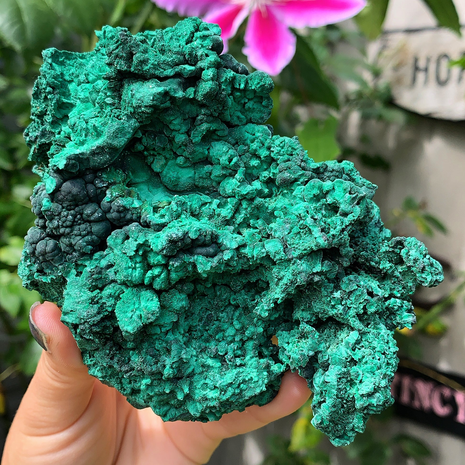 This large piece of Malachite has a sparkly sheen to it with beautiful staggered edges and dimensions. Naturally formed in its own unique shape, creating art like swirls and patterns. You will receive the exact crystal in the images. This is part of our 'Sold As Seen' collection.