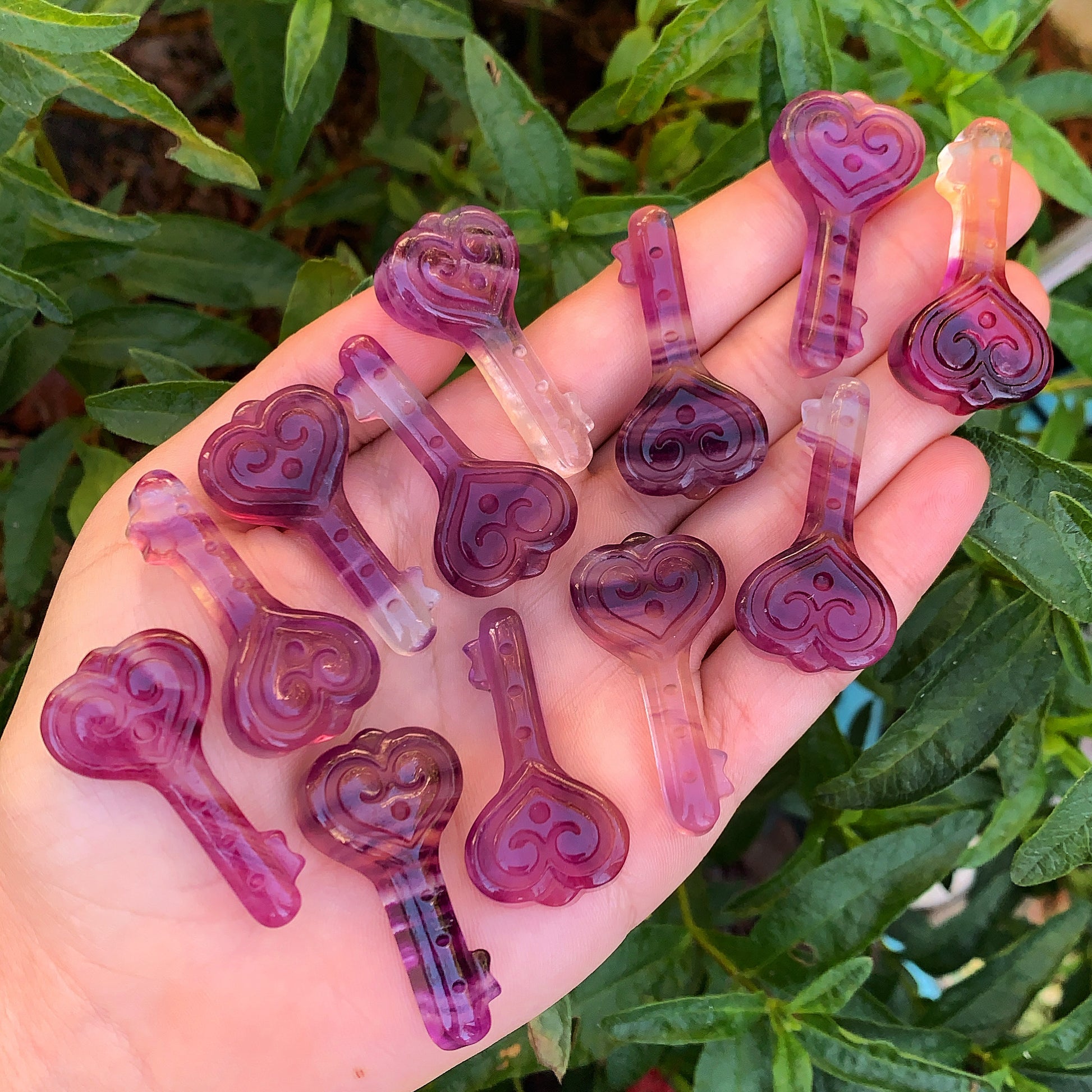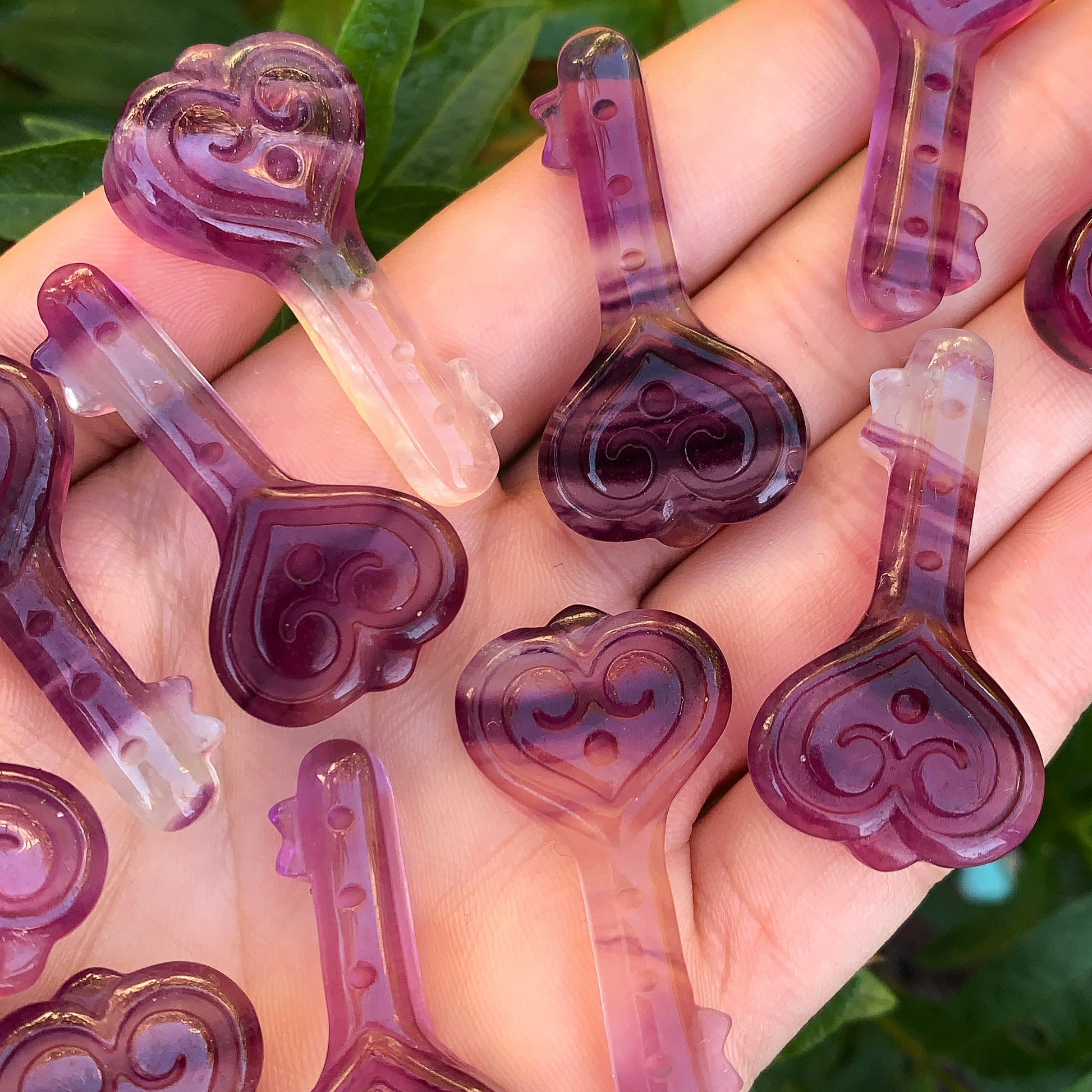 Mini Rainbow Fluorite Love Keys, so cute and tiny! Beautifully hand carved, a really nice piece to add to your collection or a lovely small gift idea for someone special. Beautiful colour banding of blues, purples and pinks makes each of these Love Keys unique. A great piece to carry with you at all times throughout the day or night.