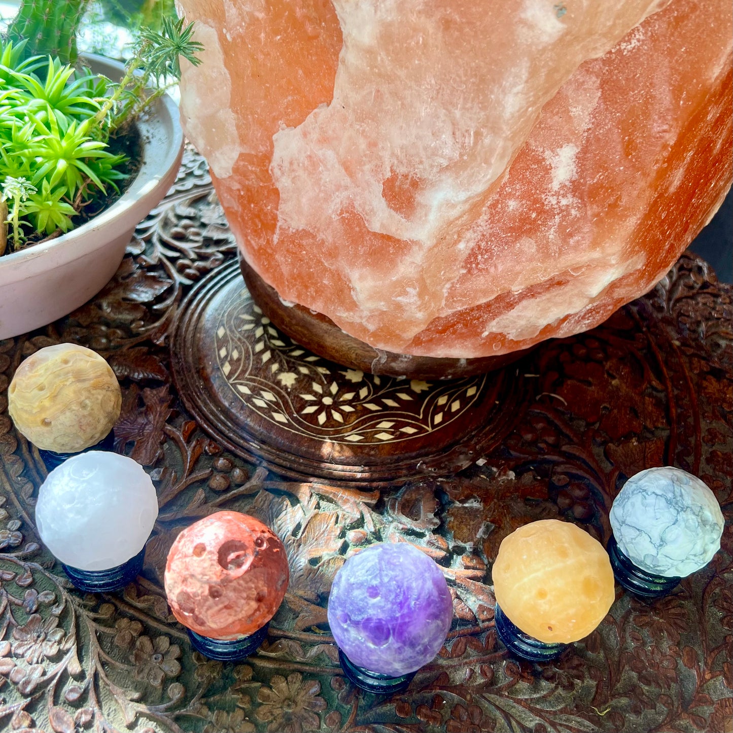 Bring the beauty and power of the universe into your home with our Planet Crystal Healing Gemstones. Each stunning crystal planet rests on a blue sandstone pedestal, creating a mini solar system for display. Perfect for children and avid collectors alike, choose your favorite planet or opt for the complete solar crystal set.