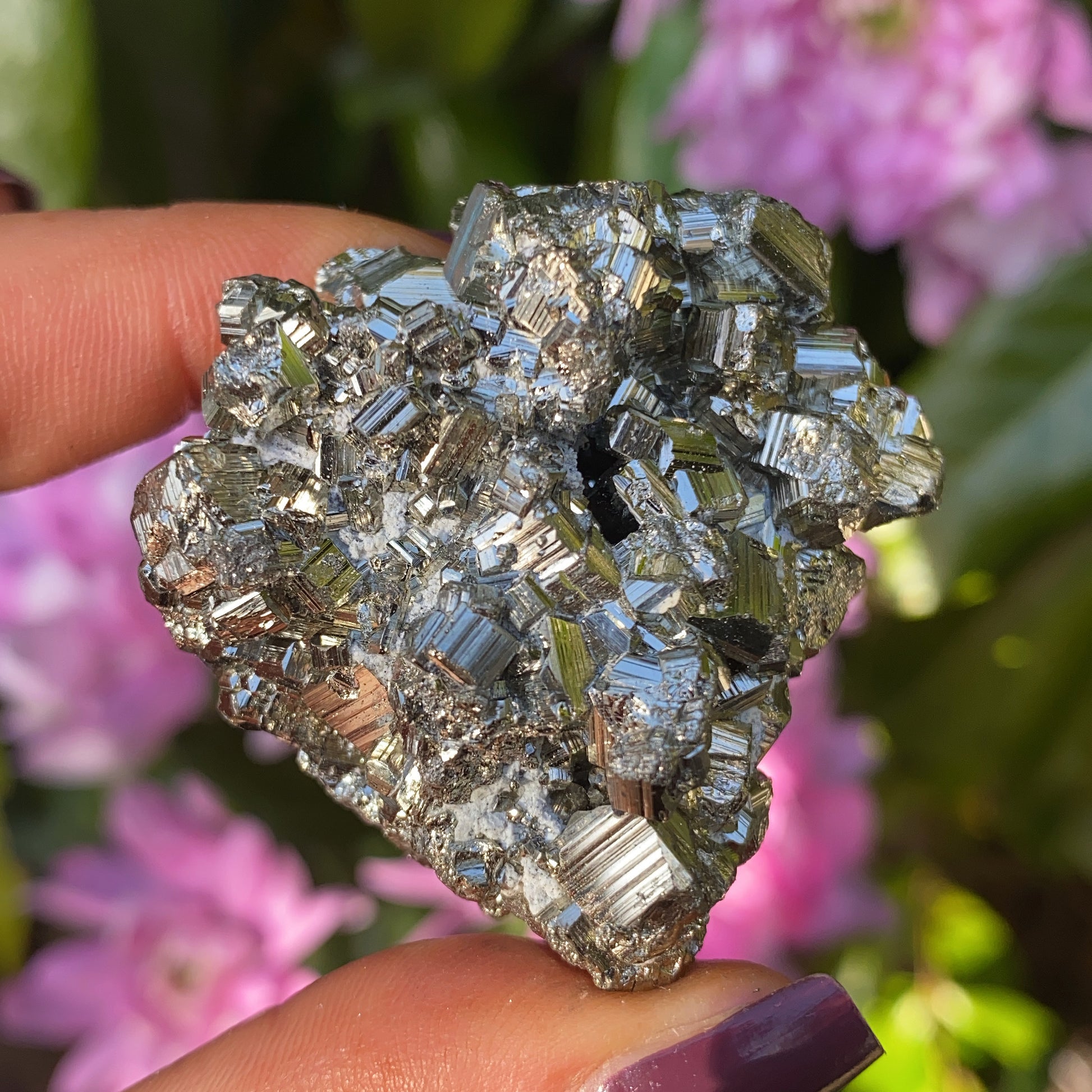 Pyrite is a powerful protection stone that works on the physical, etheric, and emotional levels to shield and protect from all types of bad vibrations and/or energy. Pyrite assists one in seeing behind facades, promoting an understanding of that which lies beneath words and actions. Ancient civilisations used Pyrite for meditation and divination.