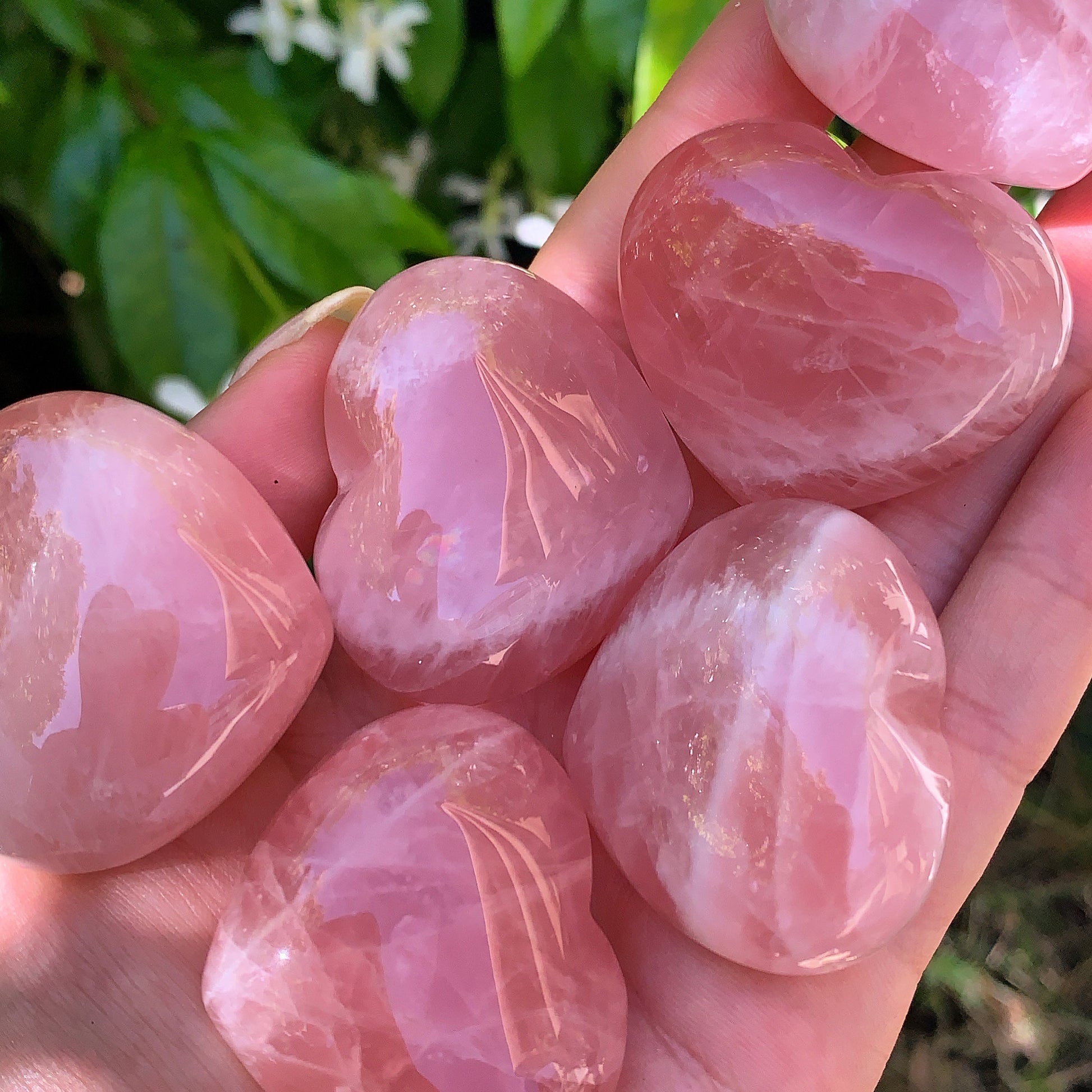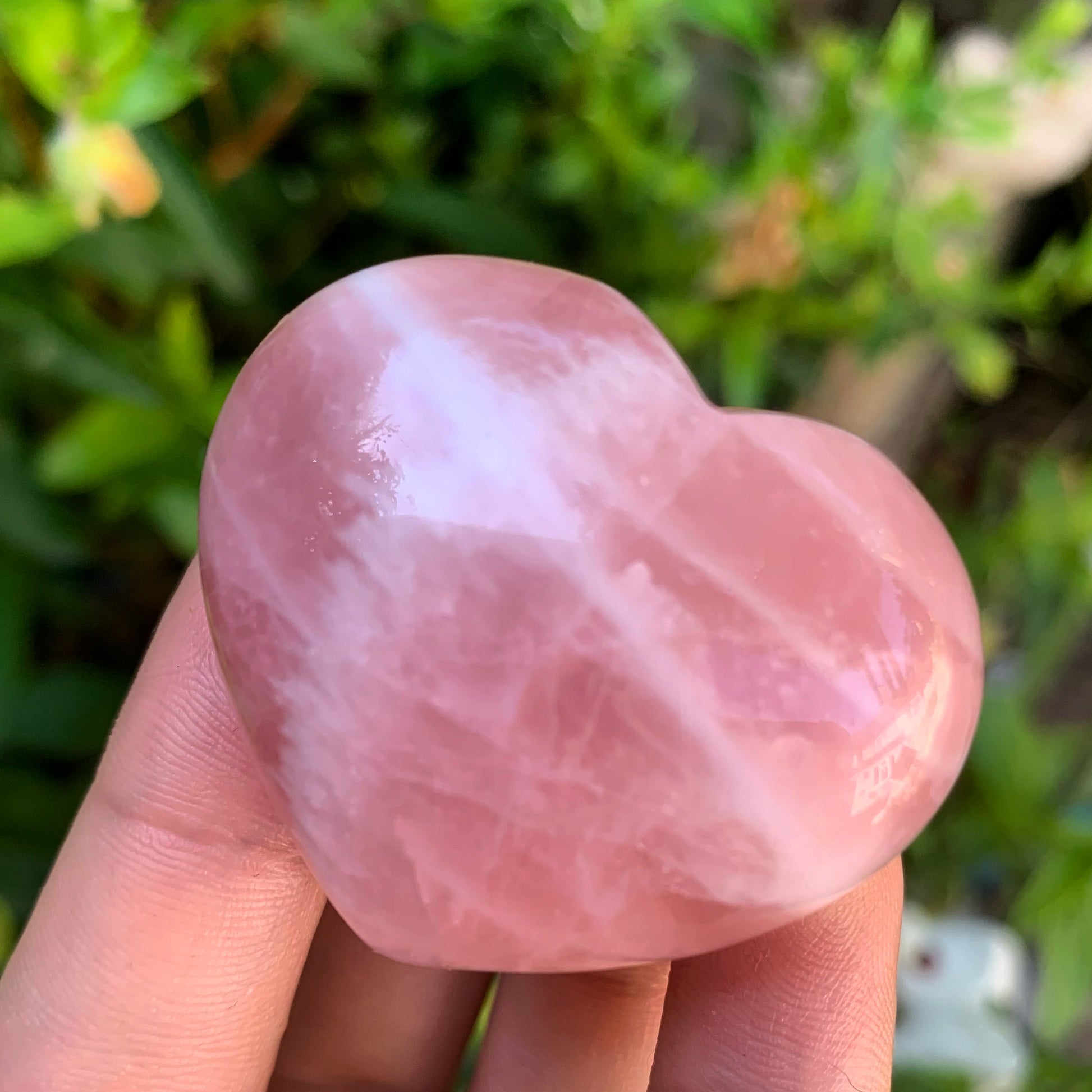 Place this Rose Quartz Heart in your palm and manifest. Amazing gift for a loved one or someone in need of some self love and inner healing. These Rose Quartz Hearts have beautiful pink hues and bands making each one unique in its own way!