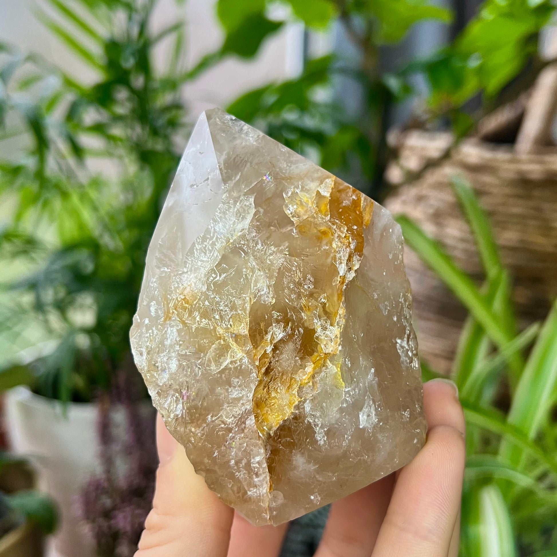 Golden healer quartz is a gemstone that is said to have many healing properties, including balancing the body, mind, and spirit. It is also believed to promote peace, harmony, and well-being.
