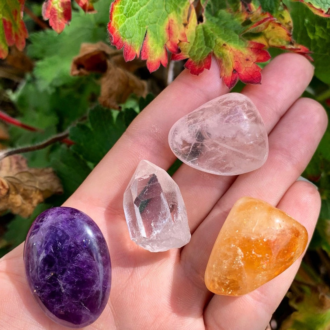 Discover 4 crystals to kickstart your journey into the world of crystal healing. With this set, you get an ideal mix of crystal properties for emotional and spiritual healing.